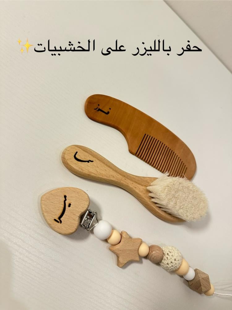 •فرشاة ومشط خشبي