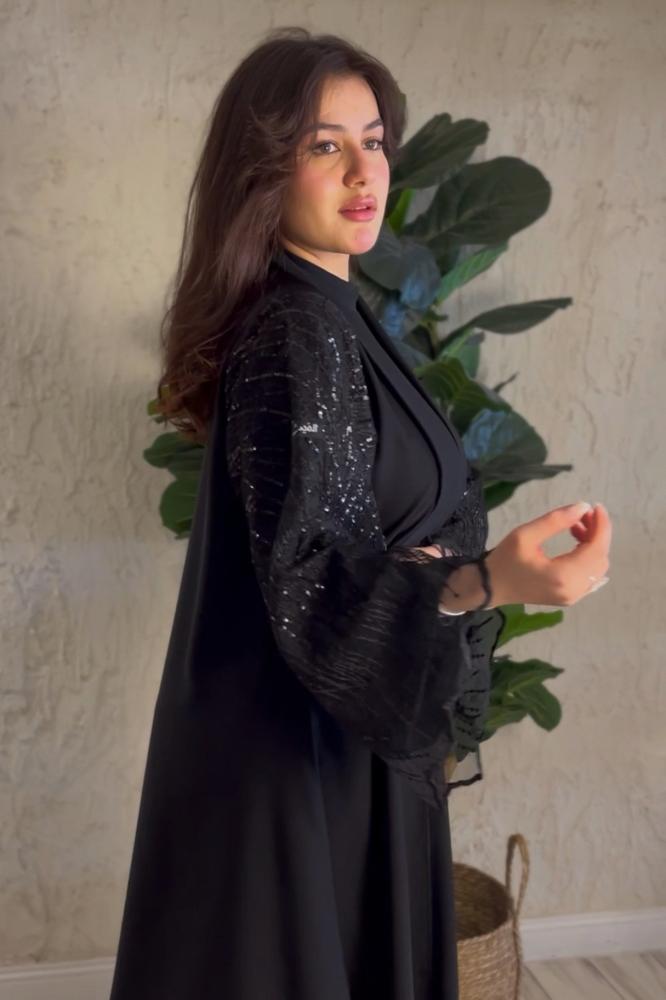 قماش العباية: كريب نواعم خفيف وشيفون مطرز مع ترتر