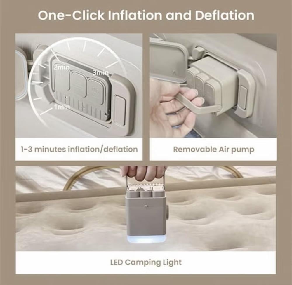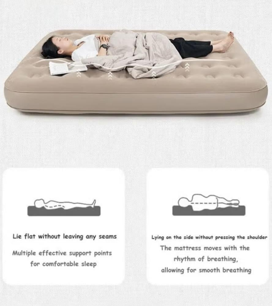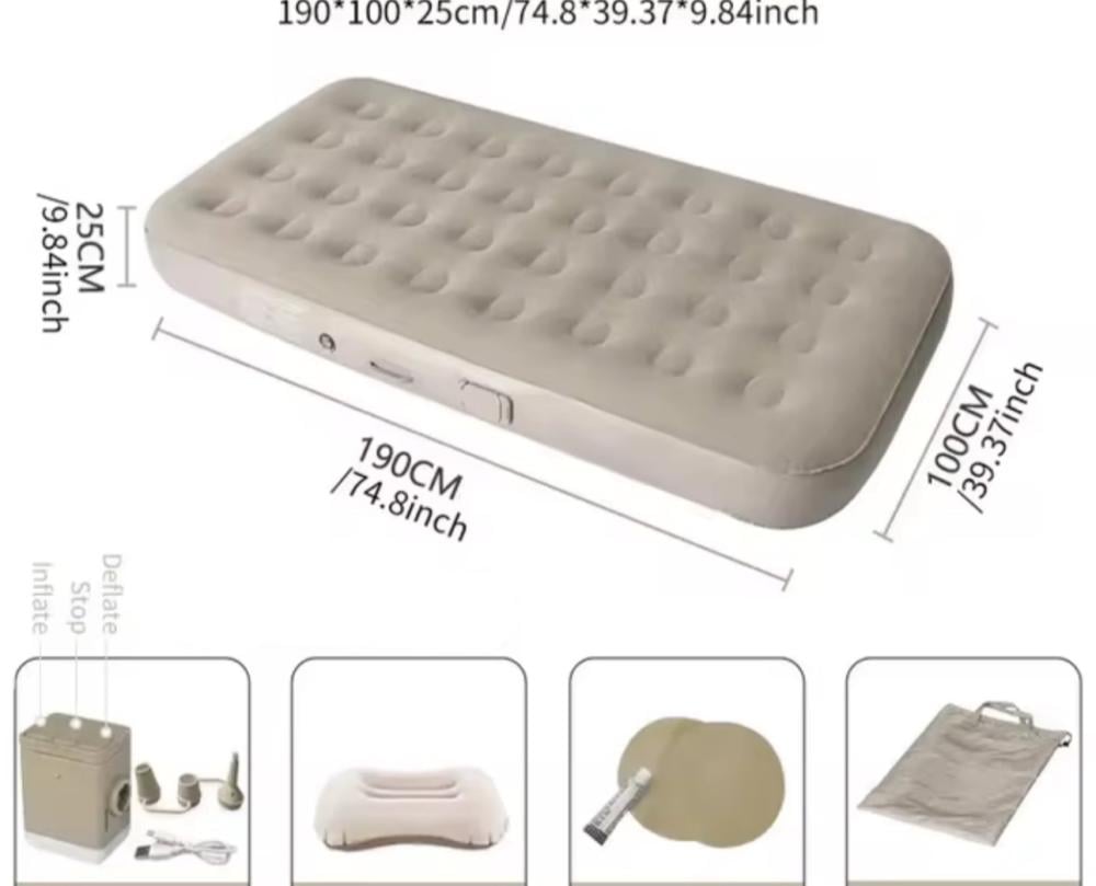 سرير هوائي مفرد مع مضخة مدمجة، مرتبة قابلة للنفخ للاستخدام المنزلي والتخييم والسفر، تضخيم/تفريغ ذاتي