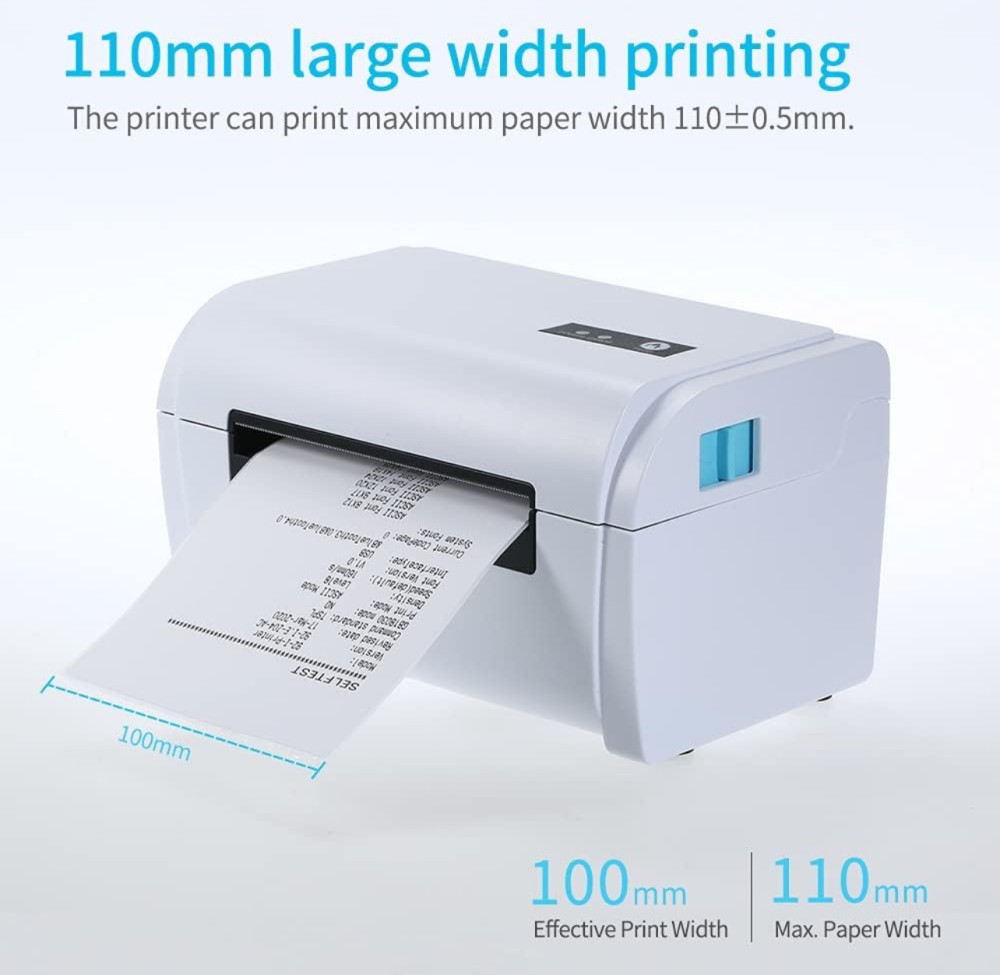 - 🍓【تصميم حامل الورق الخارجي】تدعم طباعة الورق الحراري المستمر وورق الملصقات والورق المطوي وورق البطاقات. يمكن للطابعة طباعة أقصى عرض للورق 110±0.5 ملم.