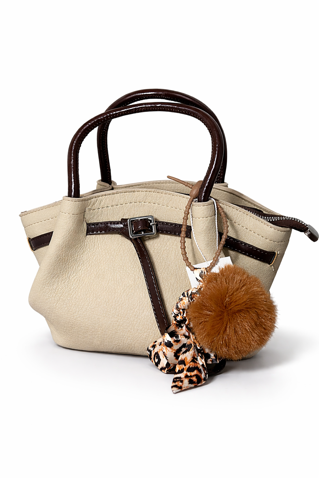 حقيبة بهجة العيد-بيج مزينة بحلية فروة ناعمة