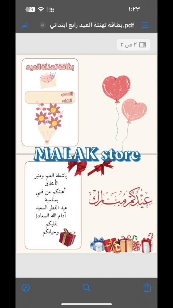 مطوية لغتي الصف الرابع الابتدائي ( بطاقة تهنئة العيد ) ١٤٤٦هـ