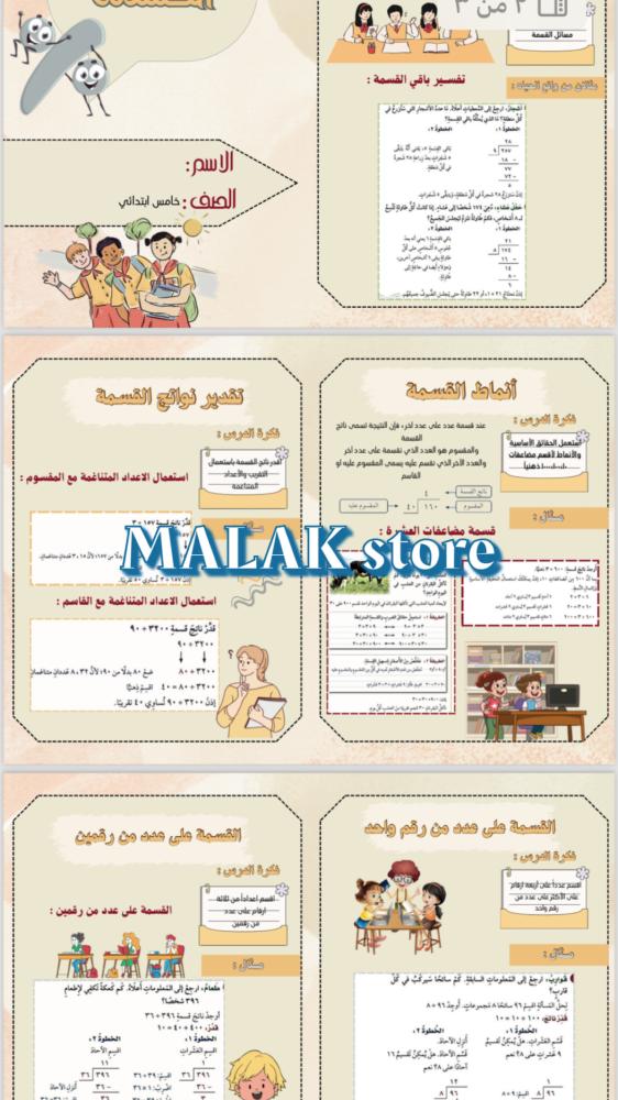 مطوية رياضيات الصف الخامس الابتدائي ( القسمة )