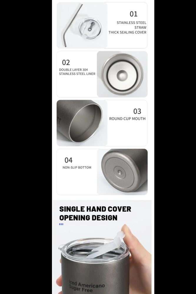 يضمن الفولاذ المزدوج الجدران ان تضل قهوتك ساخنه وبارده الفترات أطول مما يجعلها مثاليه وقت السفر أو الاستخدام أثناء التنقل