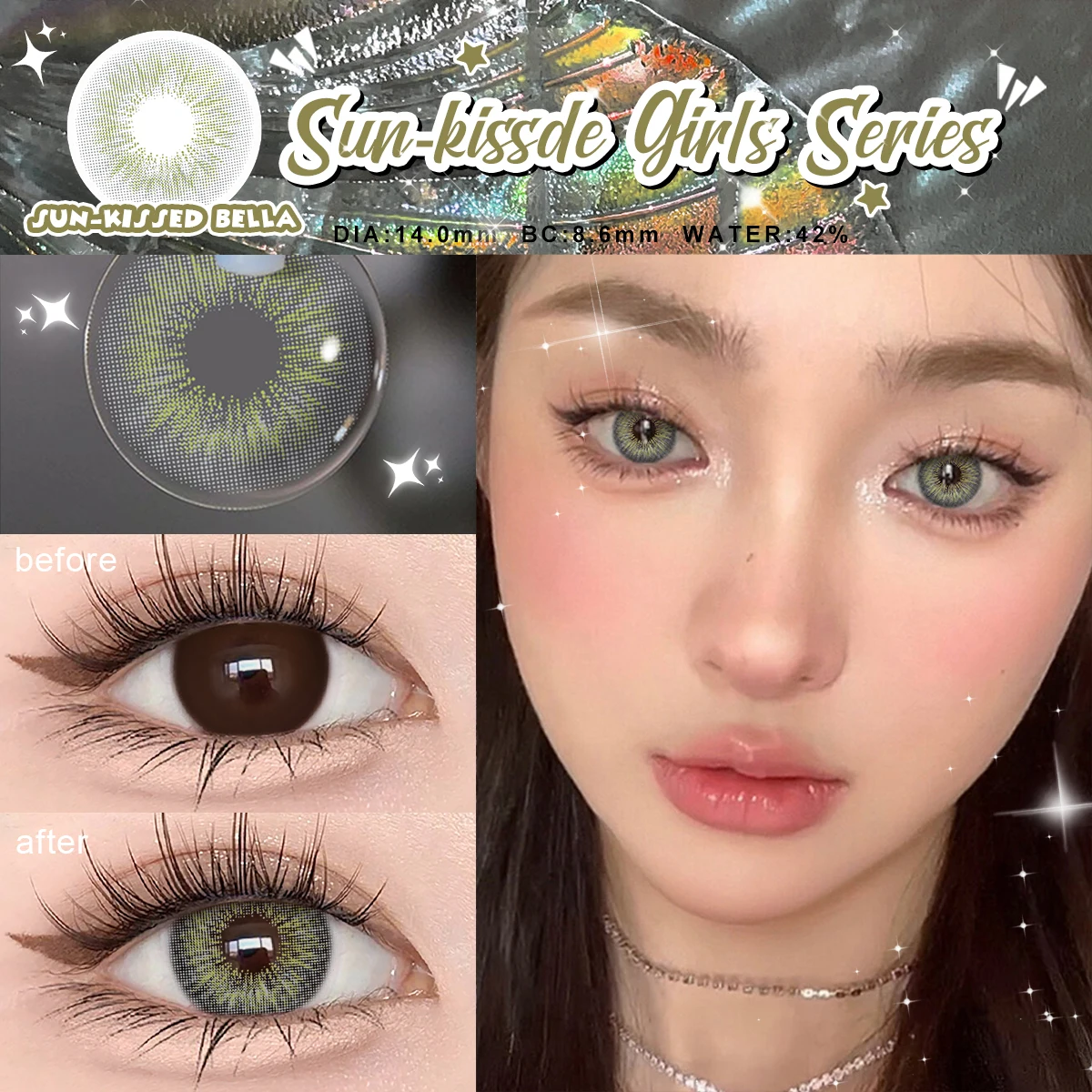 Bio-essence 1 زوج عدسات لاصقة ملونة للعيون عدسات Y2K الكورية عدسات عين خضراء عدسات رمادية عدسات طبيعية عدسات عصرية
