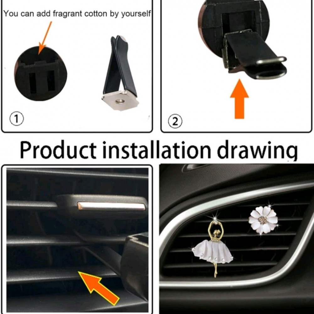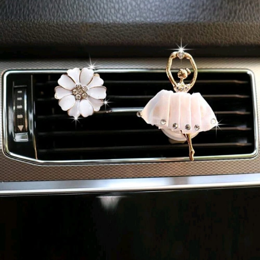 زينة ومعطر بمشبك نمط فتاة الباليه وزهرة باللون الأبيض، وهو عبارة عن إكسسوار جميل للسيارات يضفي لمسات أنيقة ومميزة على السيارة، بالإضافة إلى توفير رائحة منعشة ومميزة داخل السيارة. هذه الزينة تأتي بتصميم فريد يجمع بين شكل فتاة الباليه وزهرة جميلة، مما يمنح سيارتك لمسة جذابة وأنيقة.