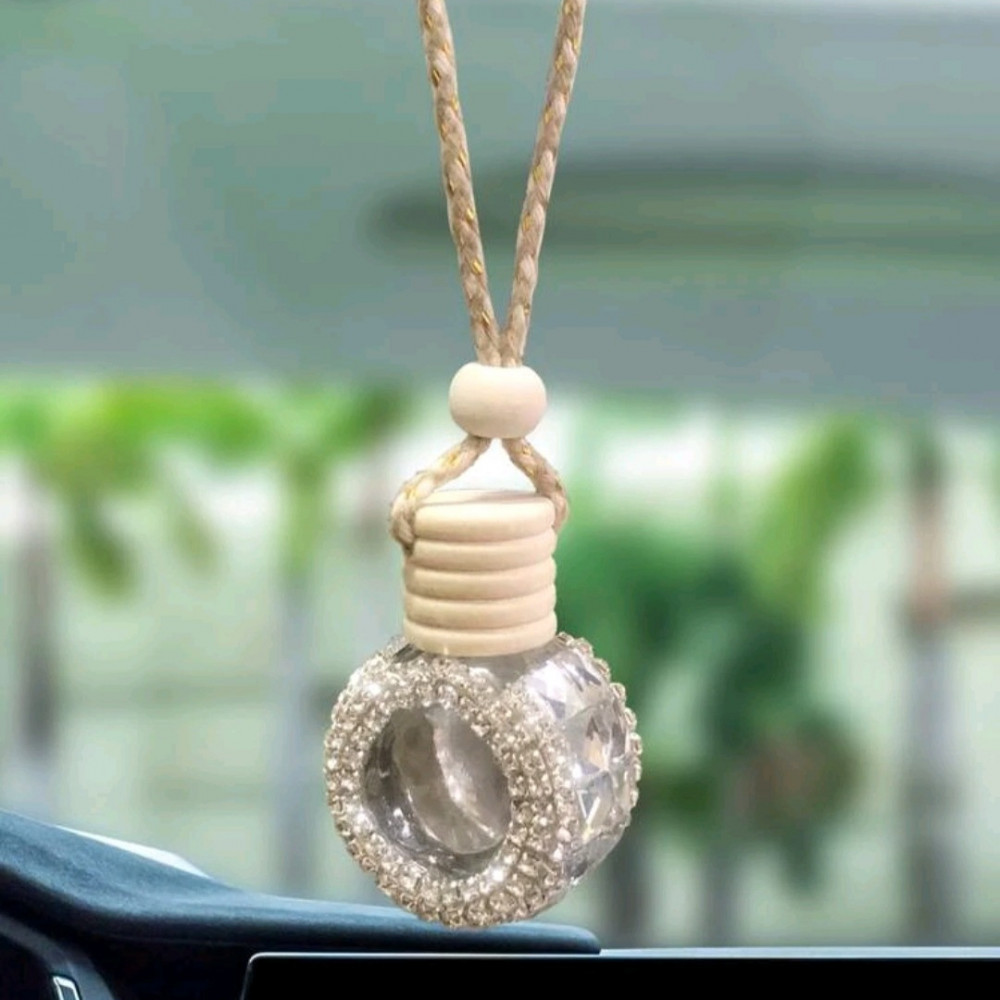 تعليقة السيارة الزجاجية المرصعة بالكريستال واحجار الراين من اكسسوارات السيارات التي تلطف وتعطر سيارتك وتجعل سيارتك رائحتها جميلة.