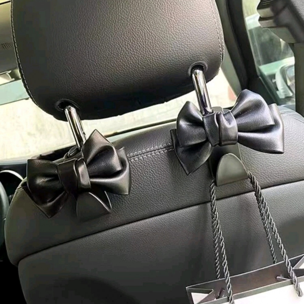 علاقة السيارة هذه نمط فيونكة جلد مصممة بشكل جميل ومناسب يمكنك وضعها بسهولة على مسند الرأس وتعليق الحقائب أو الاكياس.