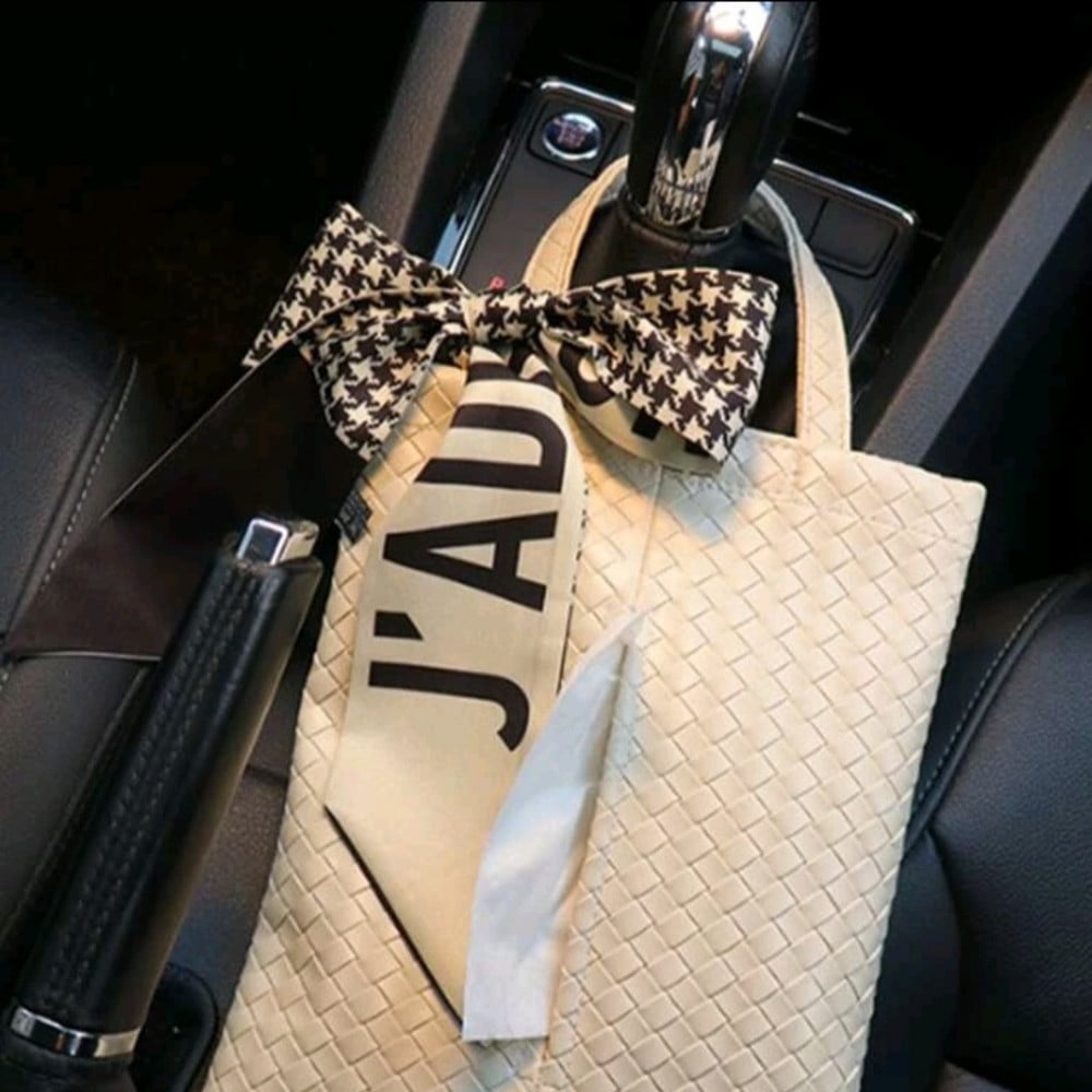 . حقيبة المناديل مخصصة للسيارة ذو شكل جميل بتصميم شبكي بربطة فيونكة.
