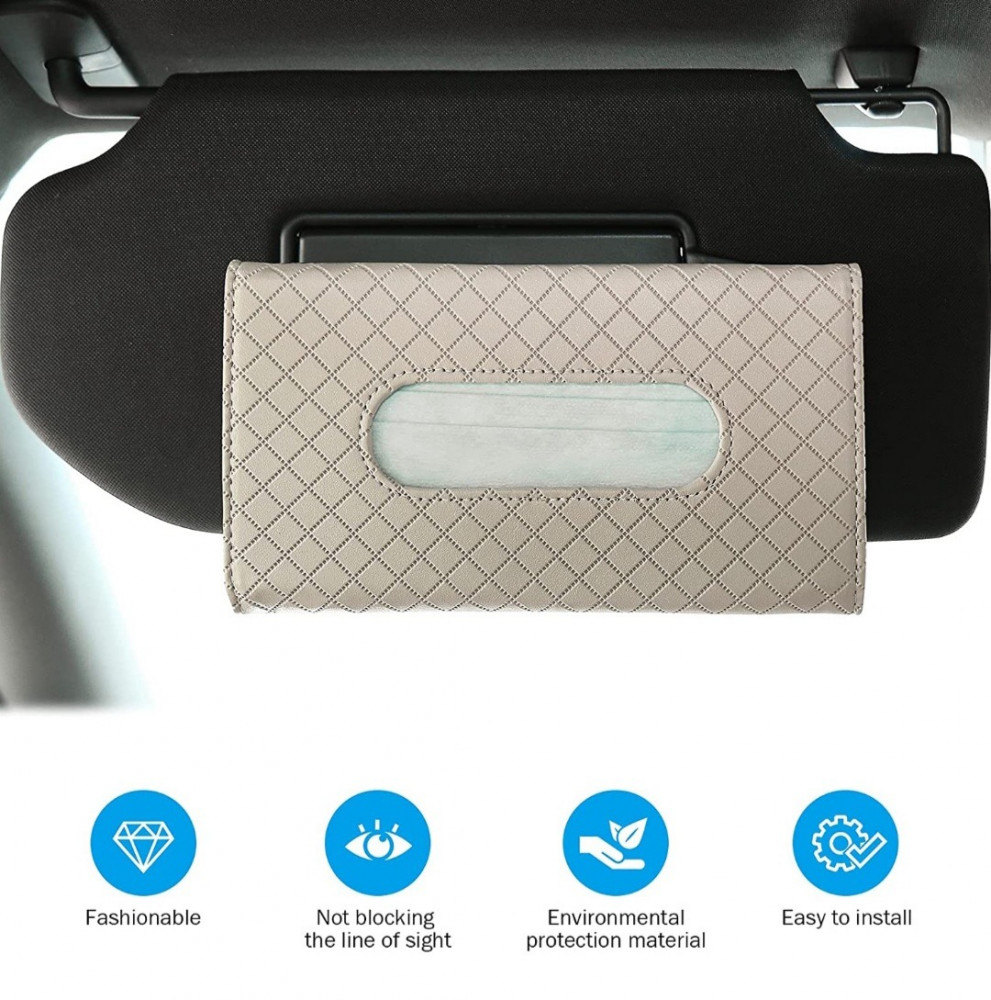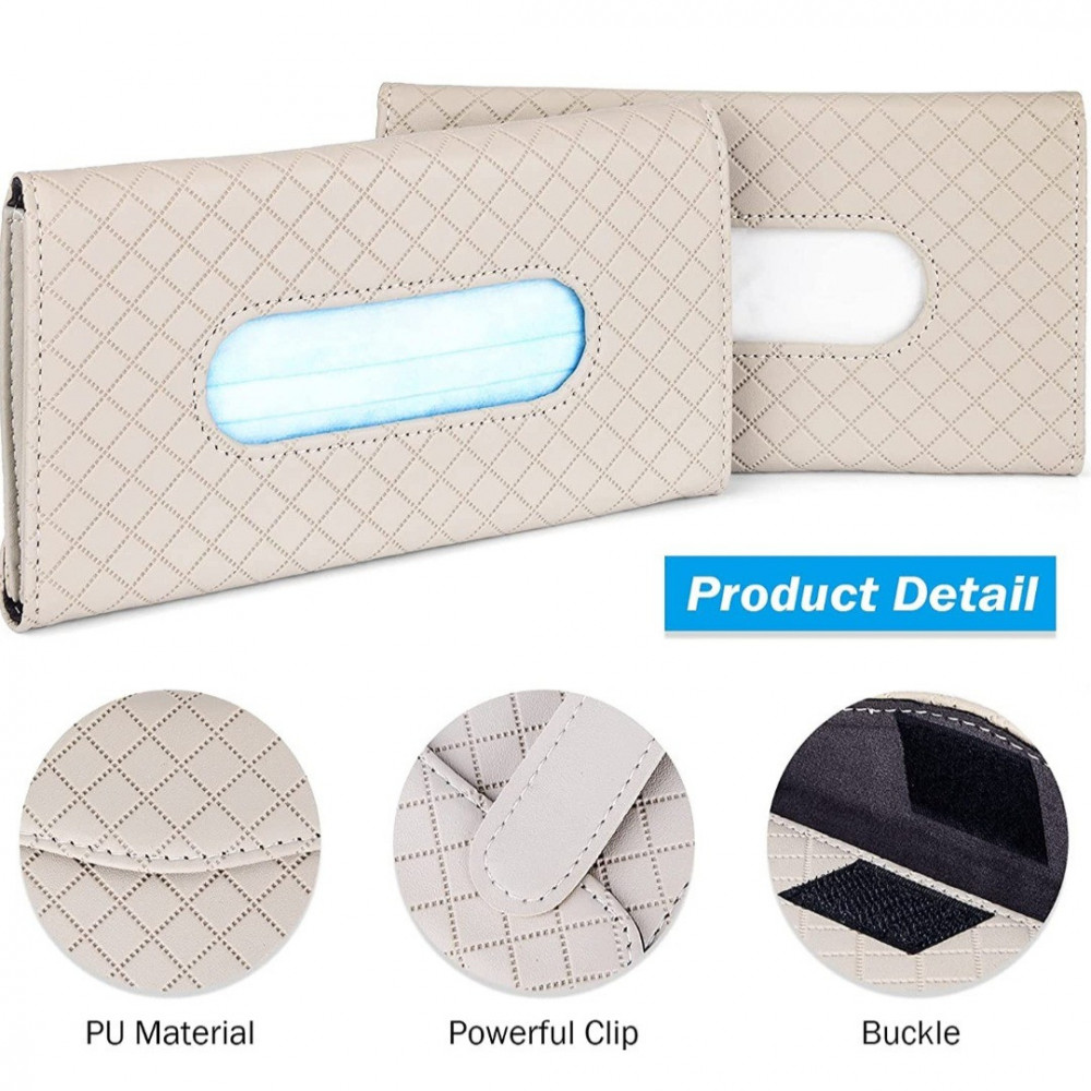 لن تكون بحاجة للتوقف إلى جانب الطريق للبحث عن علبة المناديل، عندما تقود السيارة، حيث يمكنك أن تثبت حقيبة تخزين المناديل في حاجب الشمس (الشمسية) وفي أماكن متعددة.