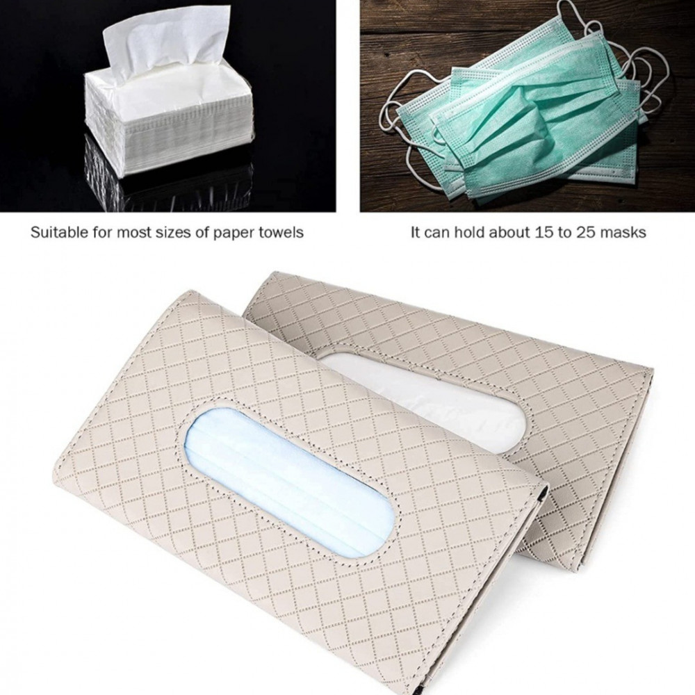 حقيبة فاخرة لتخزين المناديل للسيارة - بيج