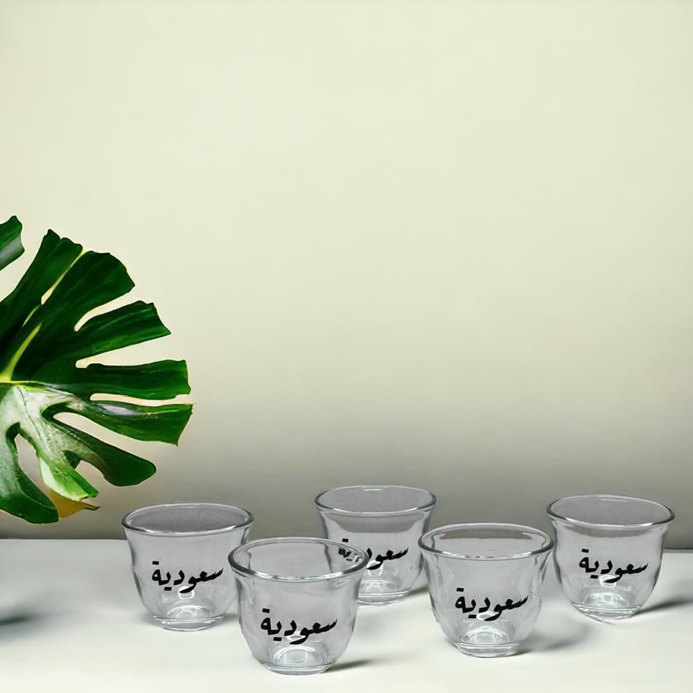 ٣- عدد ٥ فناجيل زجاج بطباعه سعودية .