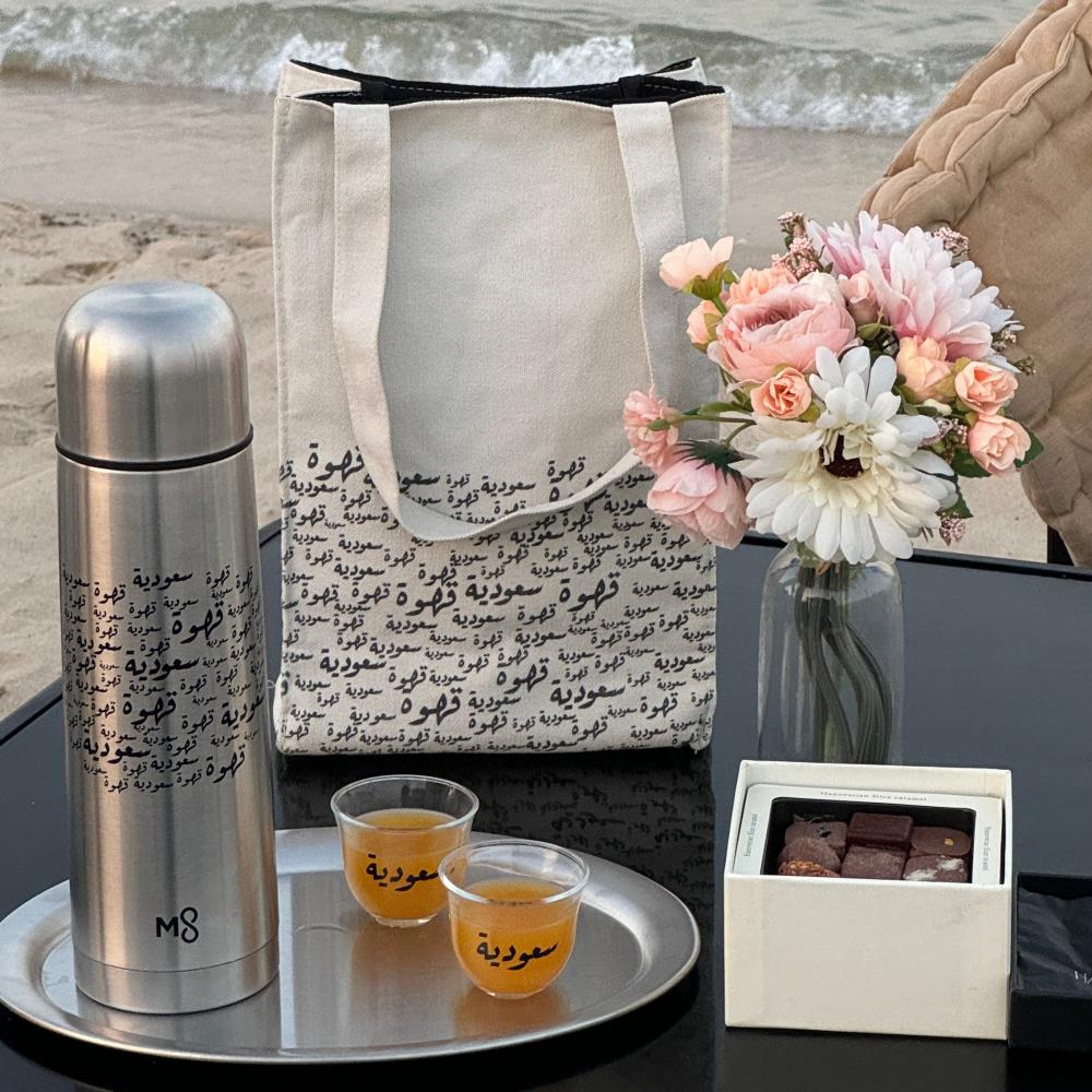 ١- شنطة قماشيه بطباعة خاصه ومميزه .