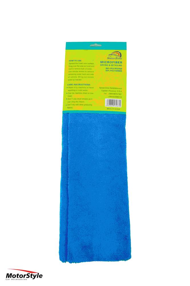 فوطة مايكروفايبر من Speed Zone بلون أزرق جذاب، مثالية لتجفيف السيارة وتلميعها بكل أمان وكفاءة. مصنوعة من مواد عالية الجودة لضمان الأداء الفائق بدون ترك خدوش أو علامات على سطح السيارة.