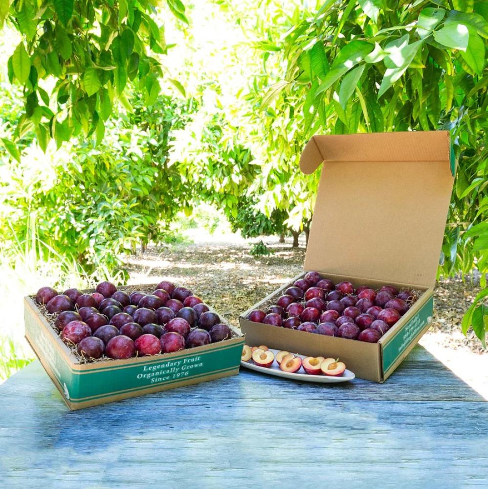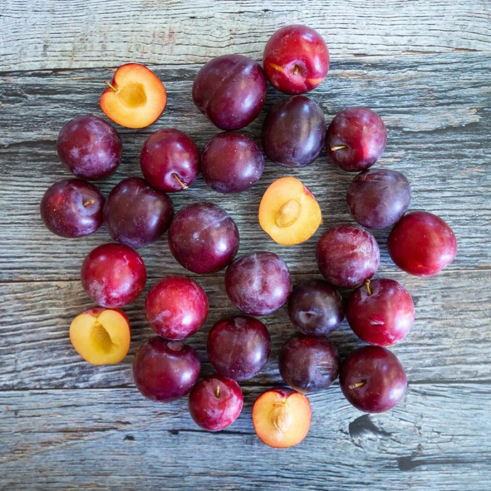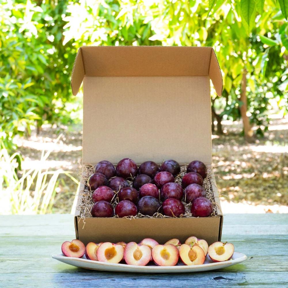 يونيو إلى يوليو، وتكون الثمار كروية متوسطة الحجم، ذات لون بنفسجي محمر، لُبها كهرماني مائل للأحمر، ذات نكهة حلوة جدا