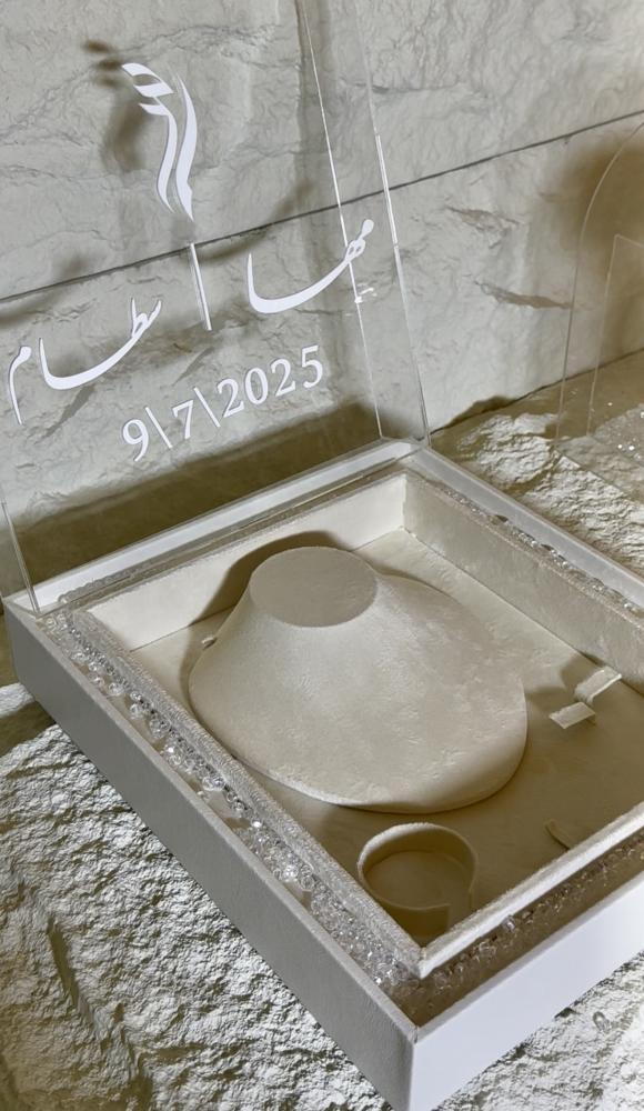 بكج العروس بوكس العقد بغطاء اكريلك بتنسيق الخرز +استاند المسكة بتنسيق الخرز +مبخرة الورد الكريستال +وردة العود +صينية رخام بتنسيق البلور شامل التنسيق