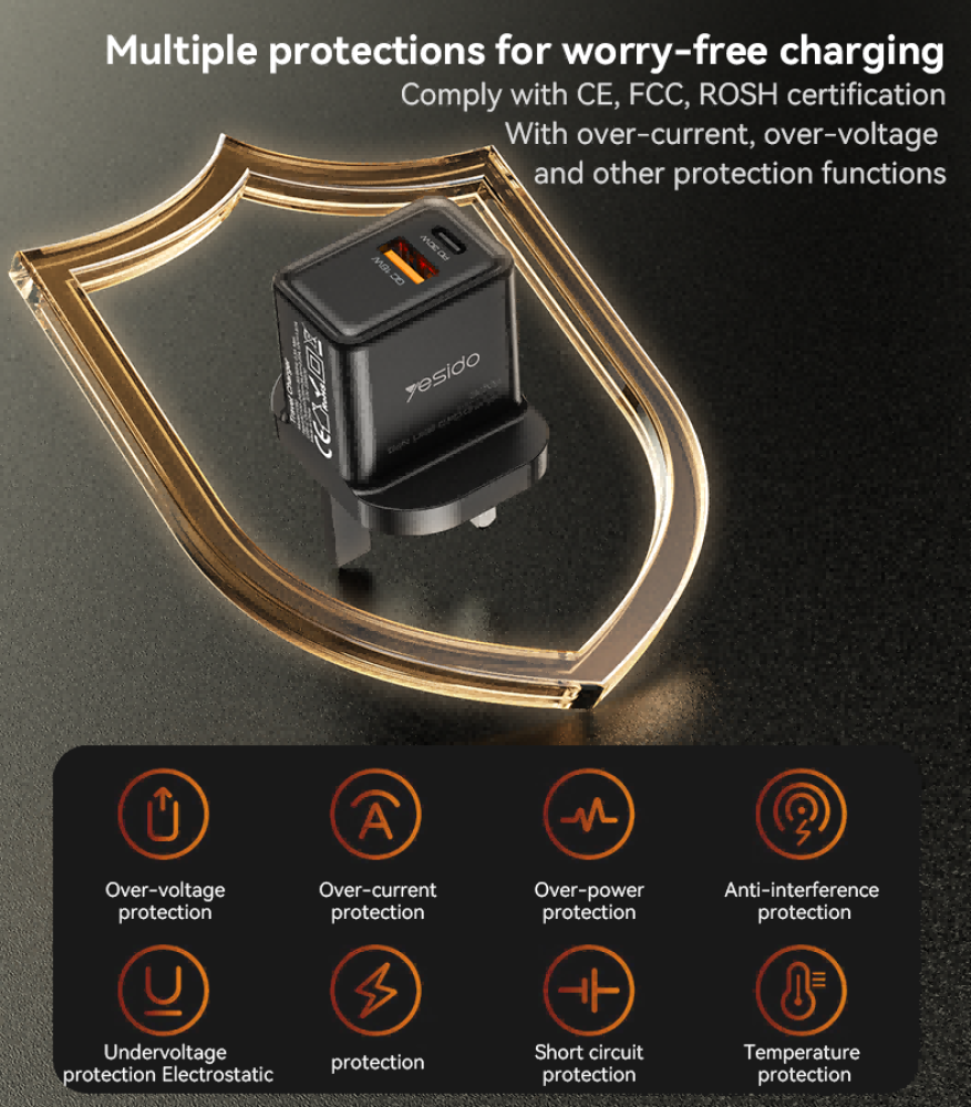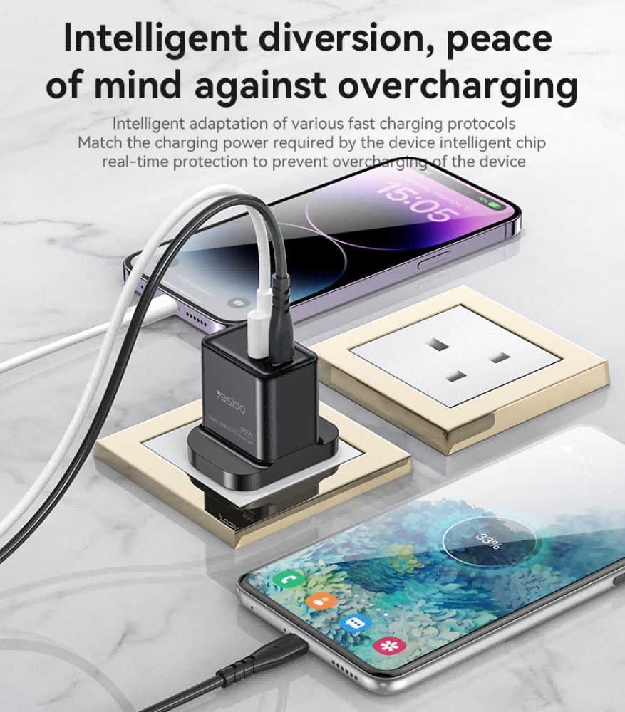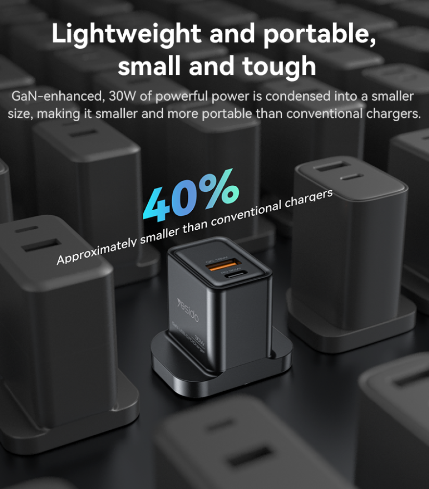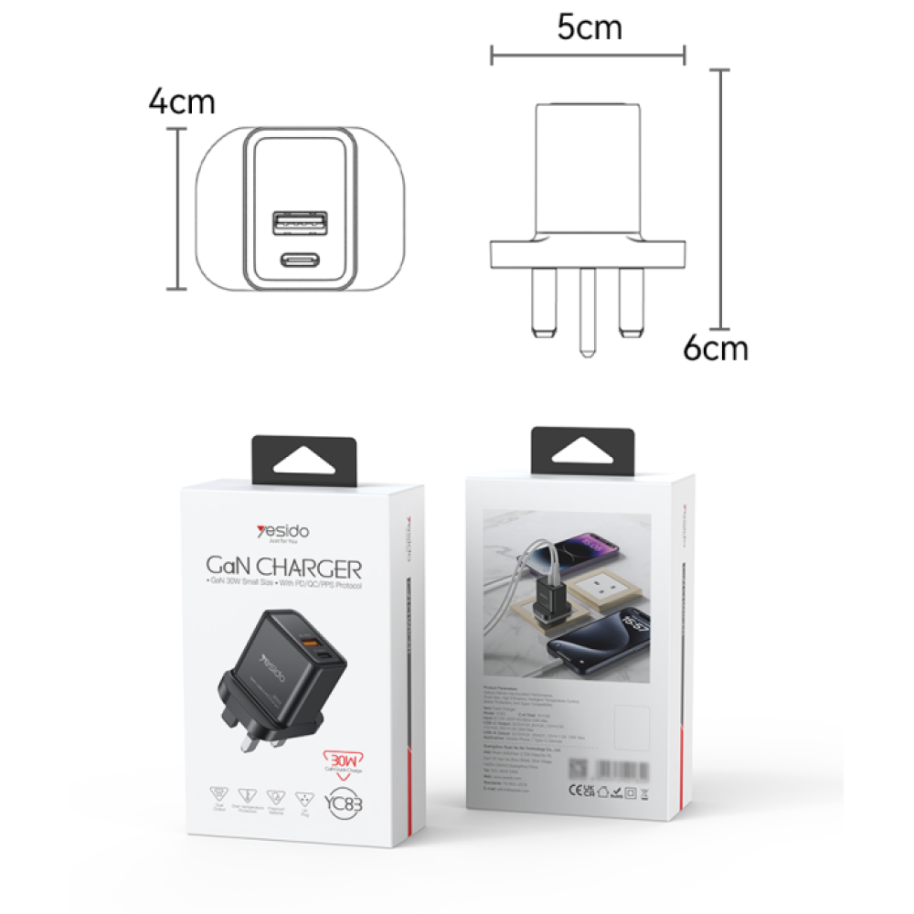 احصل على أفضل تجربة شحن مع شاحن حائط Yesido YC83 PD 30W + QC 18W، المصمم بتقنية GaN المتطورة لتوفير أداء عالٍ بحجم صغير. يتميز هذا الشاحن بتوافقه مع بروتوكولات الشحن السريع مثل QC، PD، PPS، SCP، SVP وغيرها. مثالي لشحن الهواتف الذكية، الأجهزة اللوحية، والأجهزة الإلكترونية المختلفة.