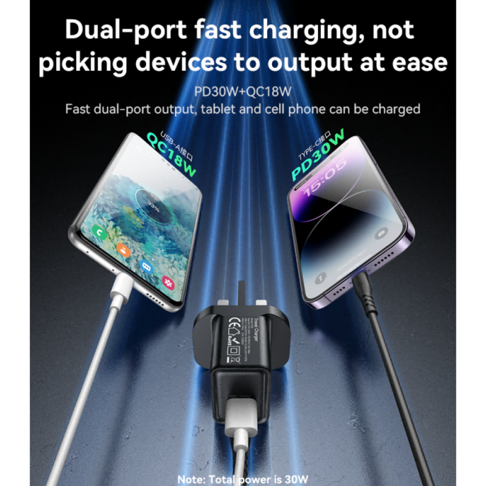 - تعدد الاستخدامات: شحن متزامن لجهازين باستخدام منفذي USB-C وUSB-A.