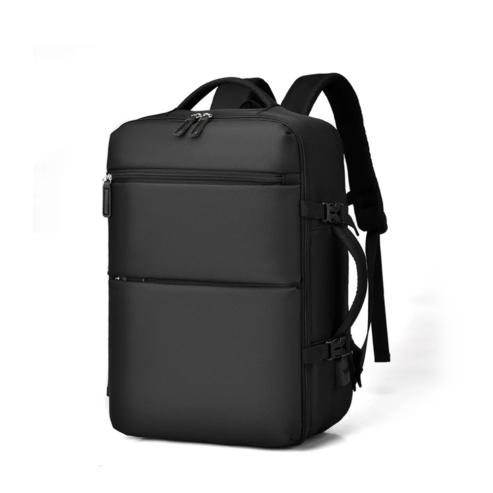 حقيبة ظهر لابتوب وسفر 2 في 1 باللون الأسود تجمع بين التصميم العصري والعملية، توفر حماية ممتازة لأجهزتك مع مساحة كافية للأغراض الشخصية أثناء التنقل والسفر.