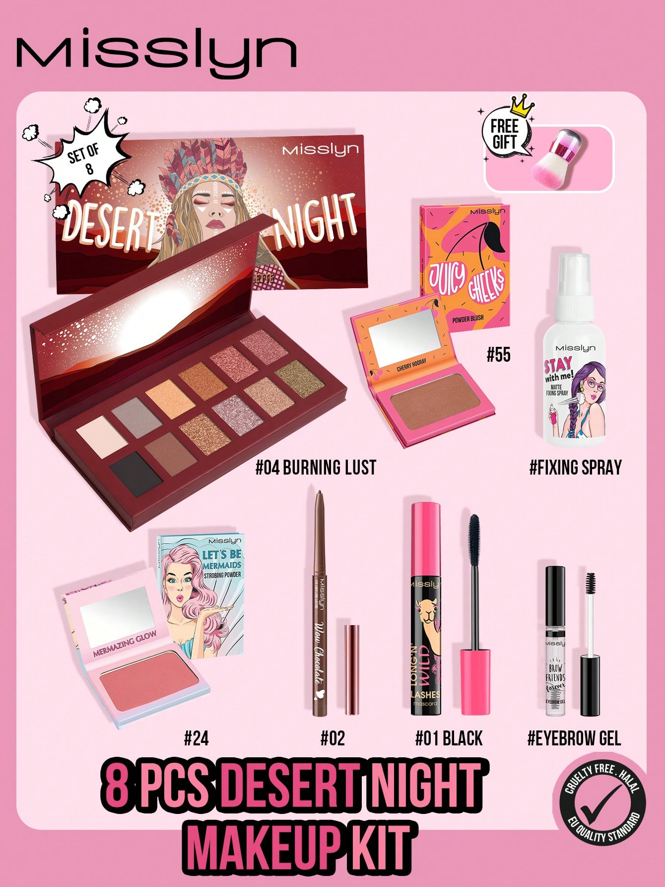 Misslyn مجموعة ميسلين-8 قطع DESERT NIGHT المكياج، لوحة ظلال DESERT NIGHT METALLIC, ماسكارا شعر الرمو