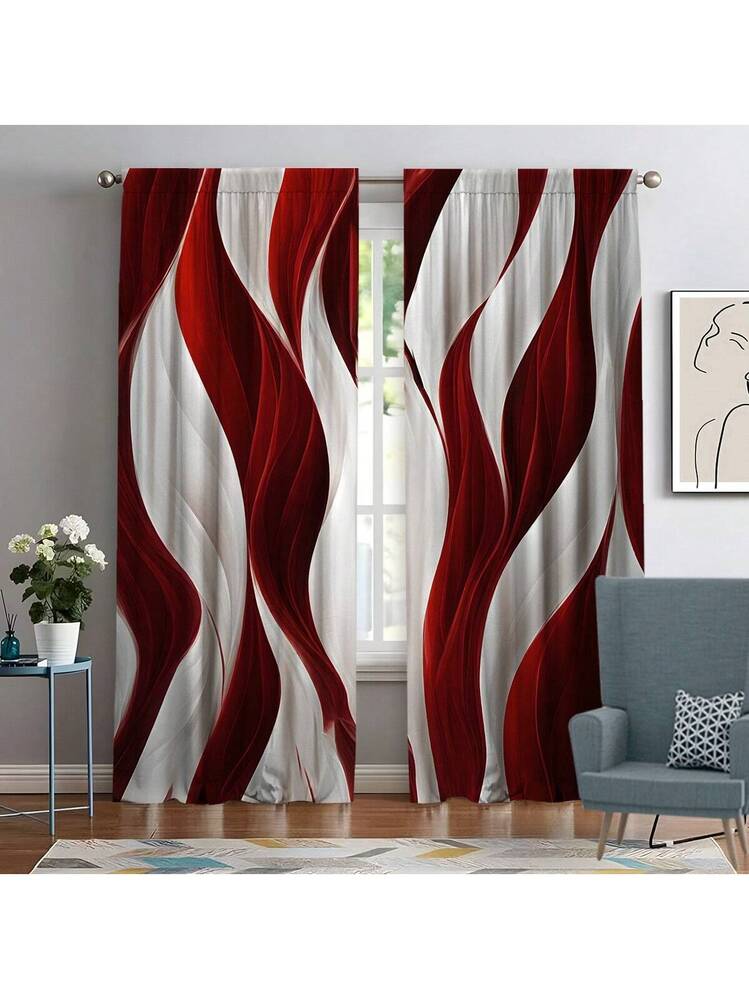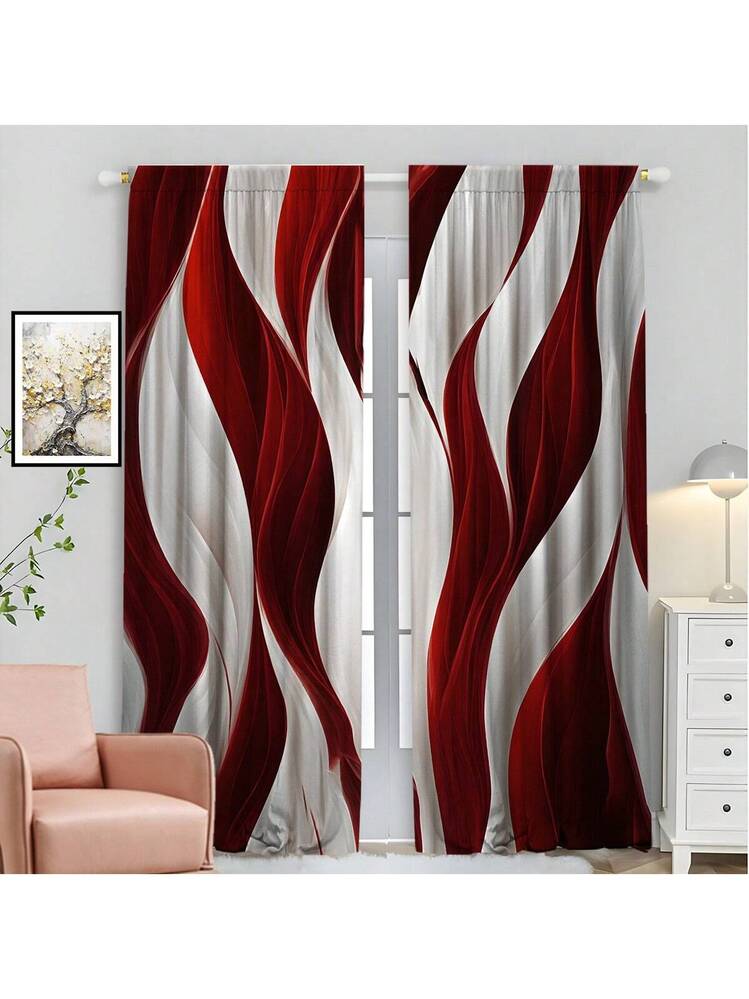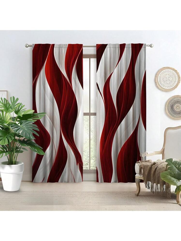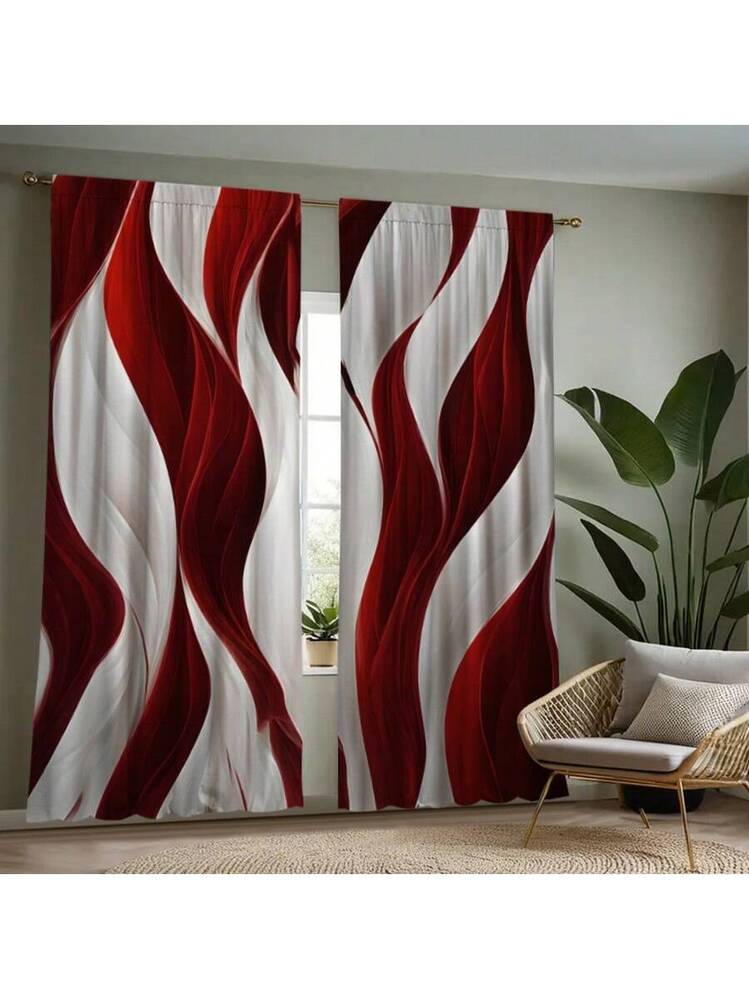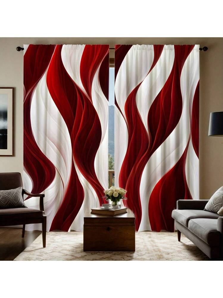 قطعتان من الستائر الفنية ذات نمط الموجة الحمراء والبيضاء ، بتصميم بسيط وحديث وطباعة رقمية ثلاثية الأ