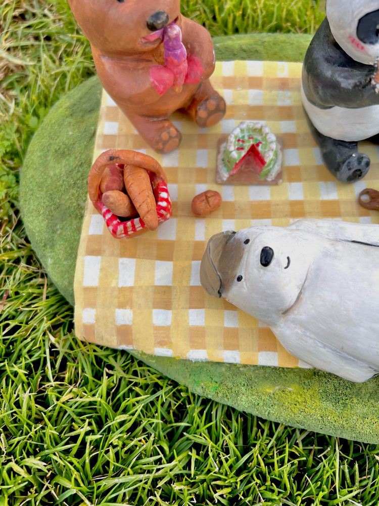 - منحوته صنع يدوي لمشهد من كرتون الدببه الثلاثه .