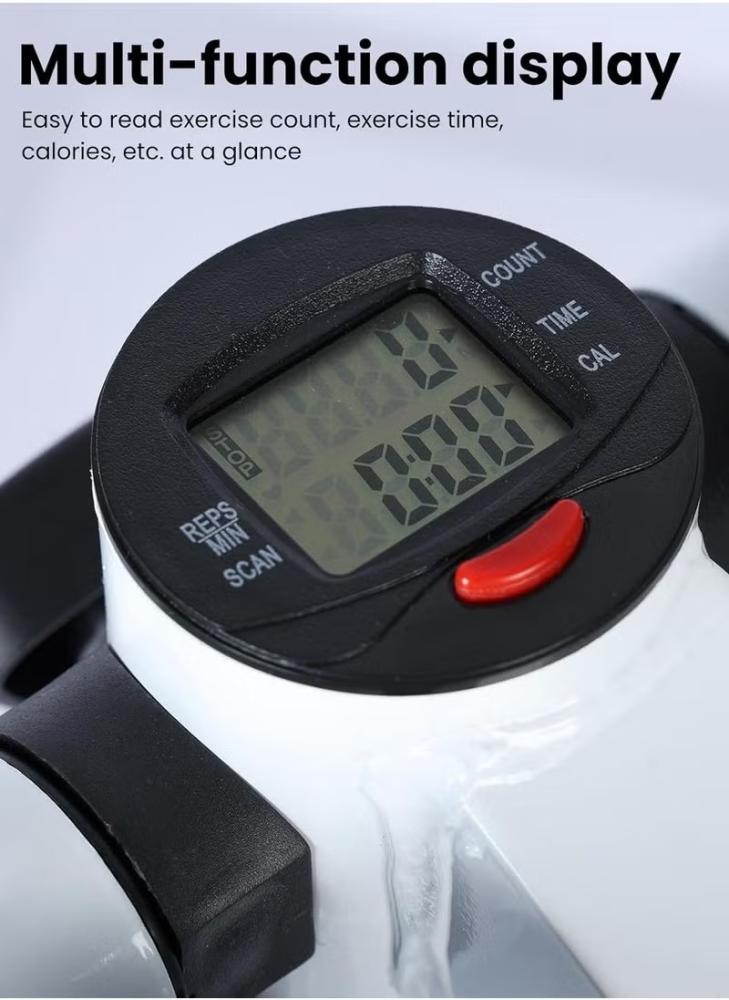 - شاشة رقمية ذكية: تتابع عدد التكرارات، الوقت، السعرات المحروقة والمجموع الكلي للعدّات.