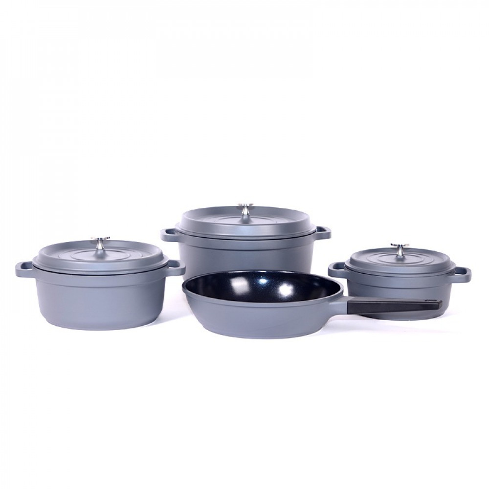 طقم قدور 7 قطع نظام توزيع الحرارة غير قابل للإلتصاق مقبض مقاوم للحرارة 3 قدور + 3 اغطية + مقلي قدر كبير قدر وسط قدر صغير مقلي