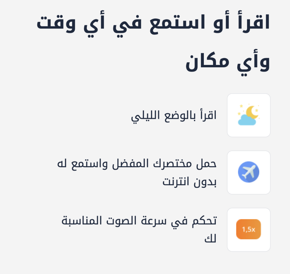 - وصول سريع من خلال هاتفك لملخصات نصية + صوتية جاهزة للاستهلاك السريع.