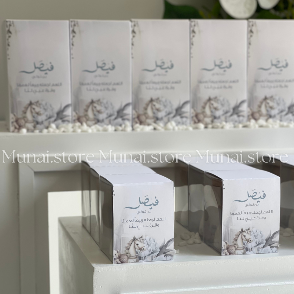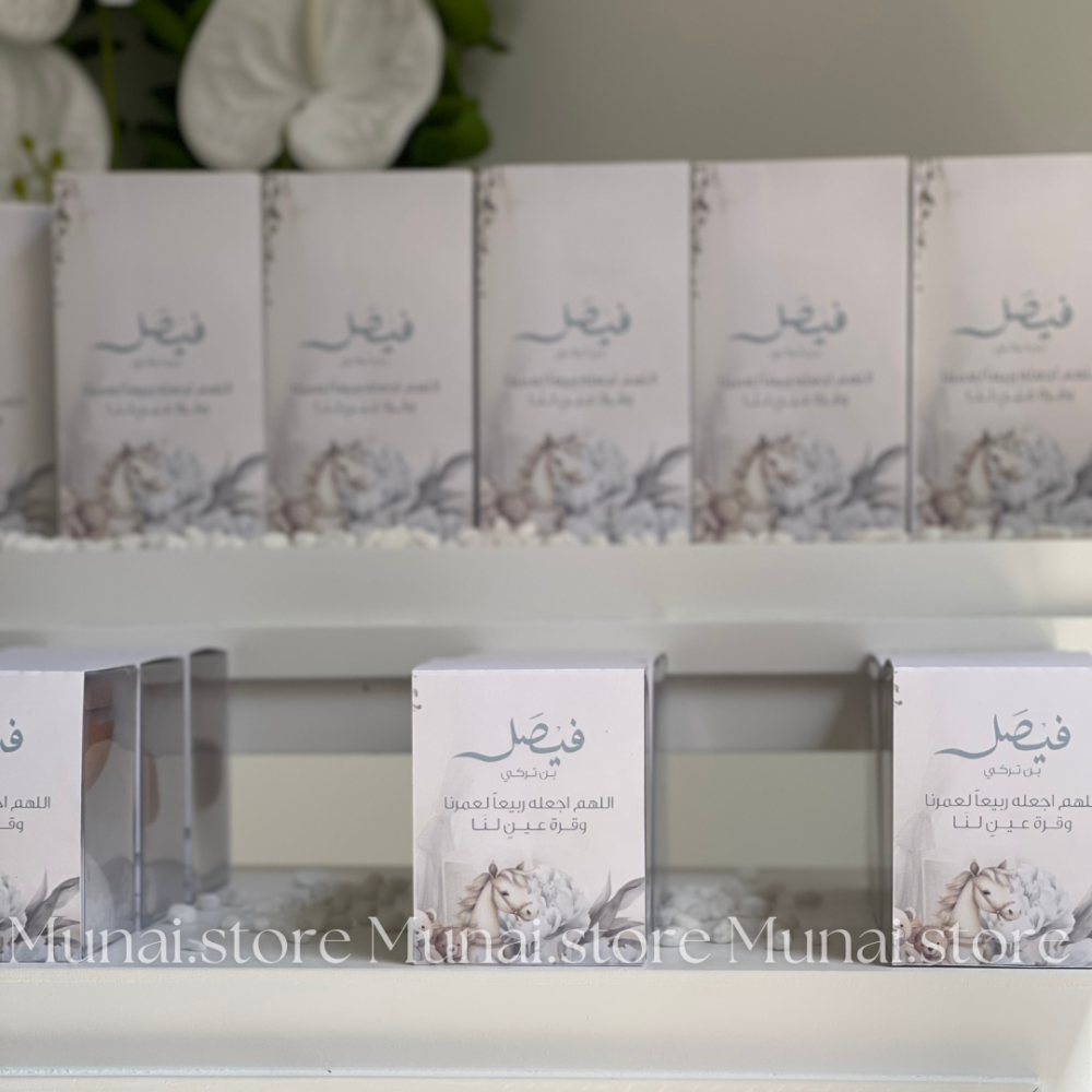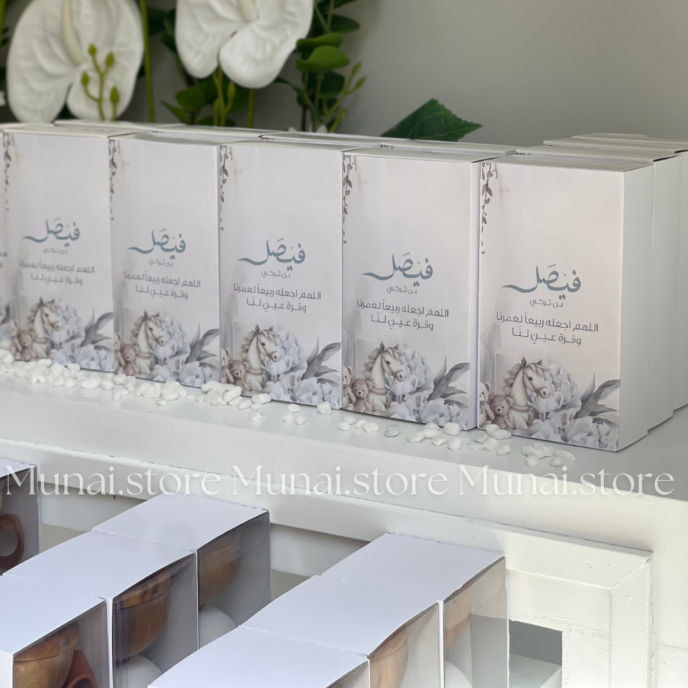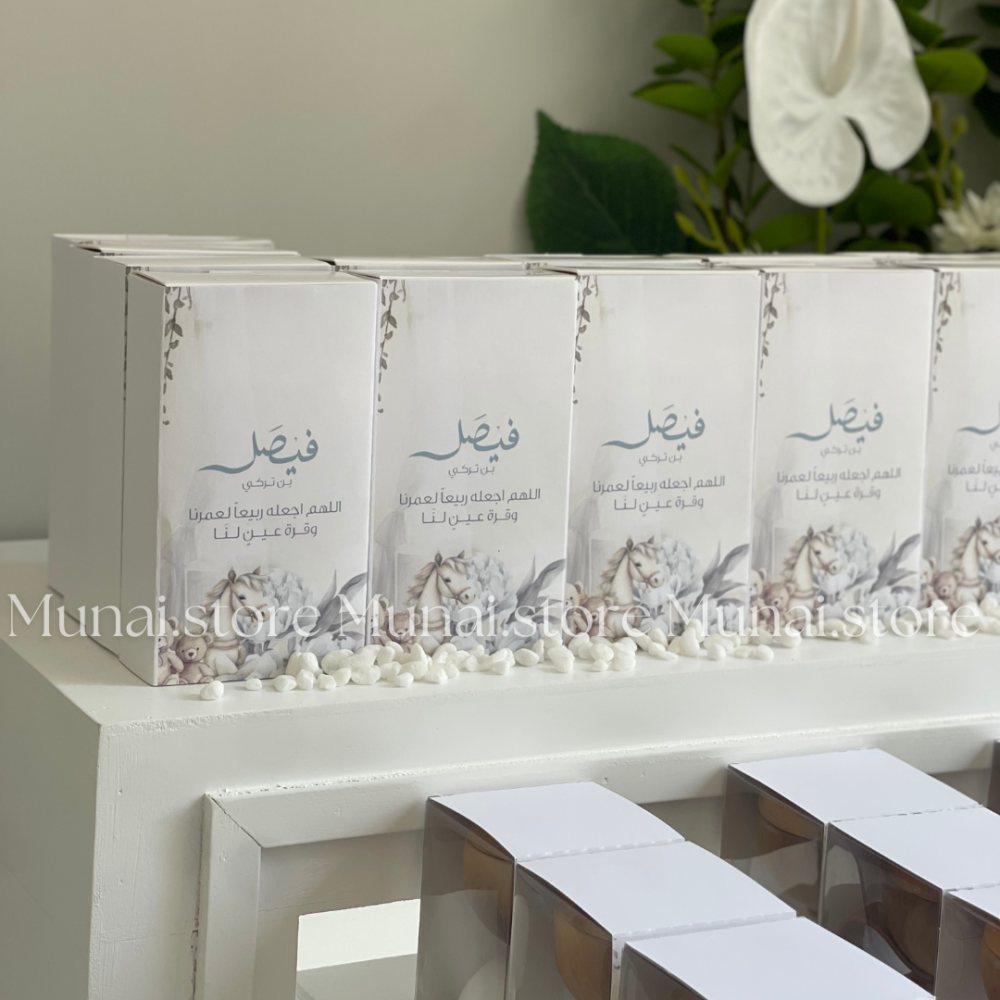 بكج بيبي فيصل عبارة عن :24 فواحة الأعواد بروائح عطرية مميزة مغلفة بتصميمك الخاص .12 مبخرة فاخرة بمسكة جلد .6 علب مناديل اسطوانية .