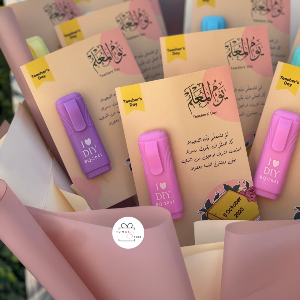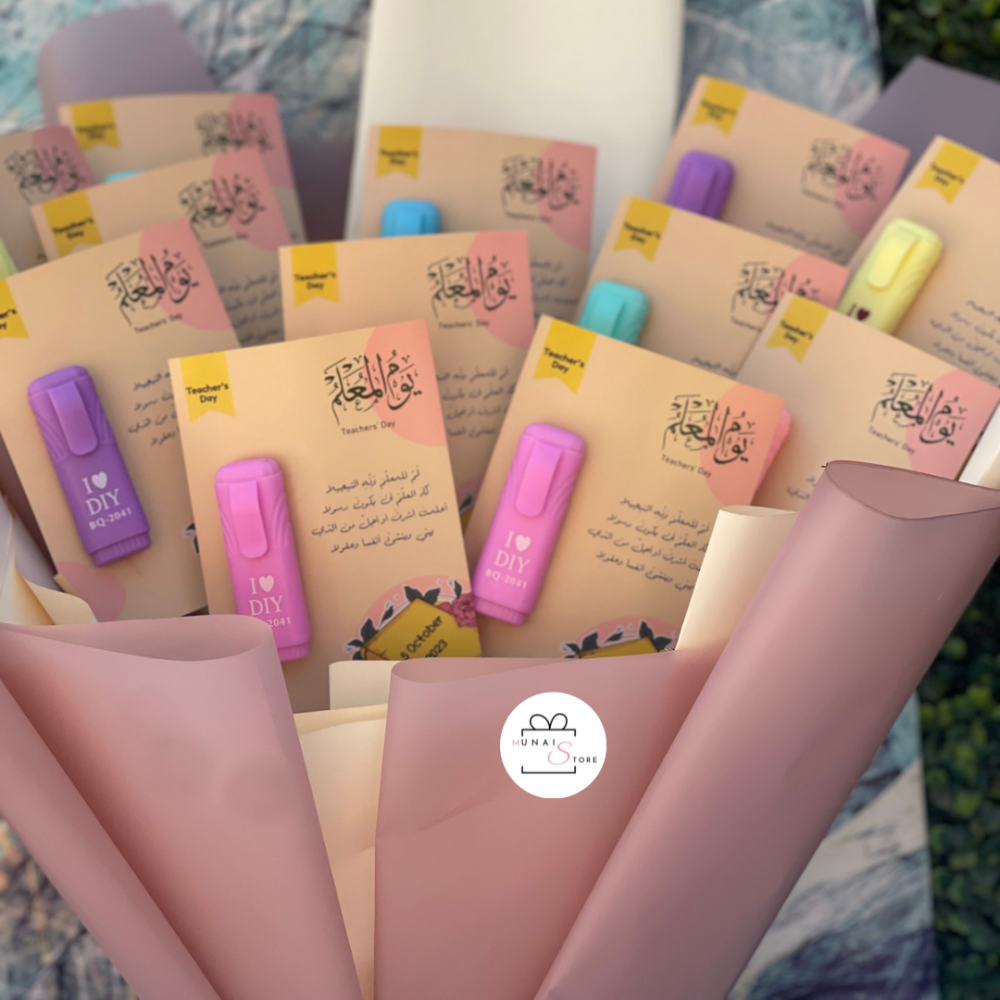 باقة قلم تحديد مع كرت يوم المعلم