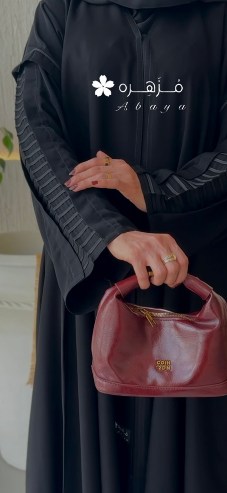 تم تصميم هذه العباية بعناية باستخدام قماش كريب ملكي كوري (نصف القمر)، المعروف بجودته العالية وملمسه الفاخر.