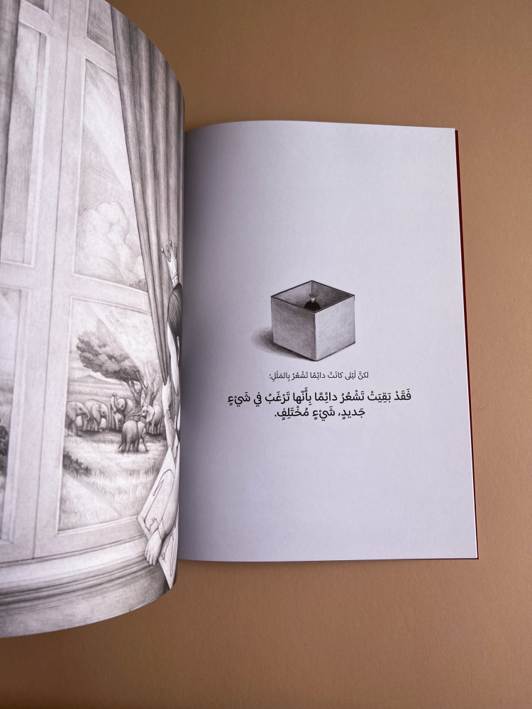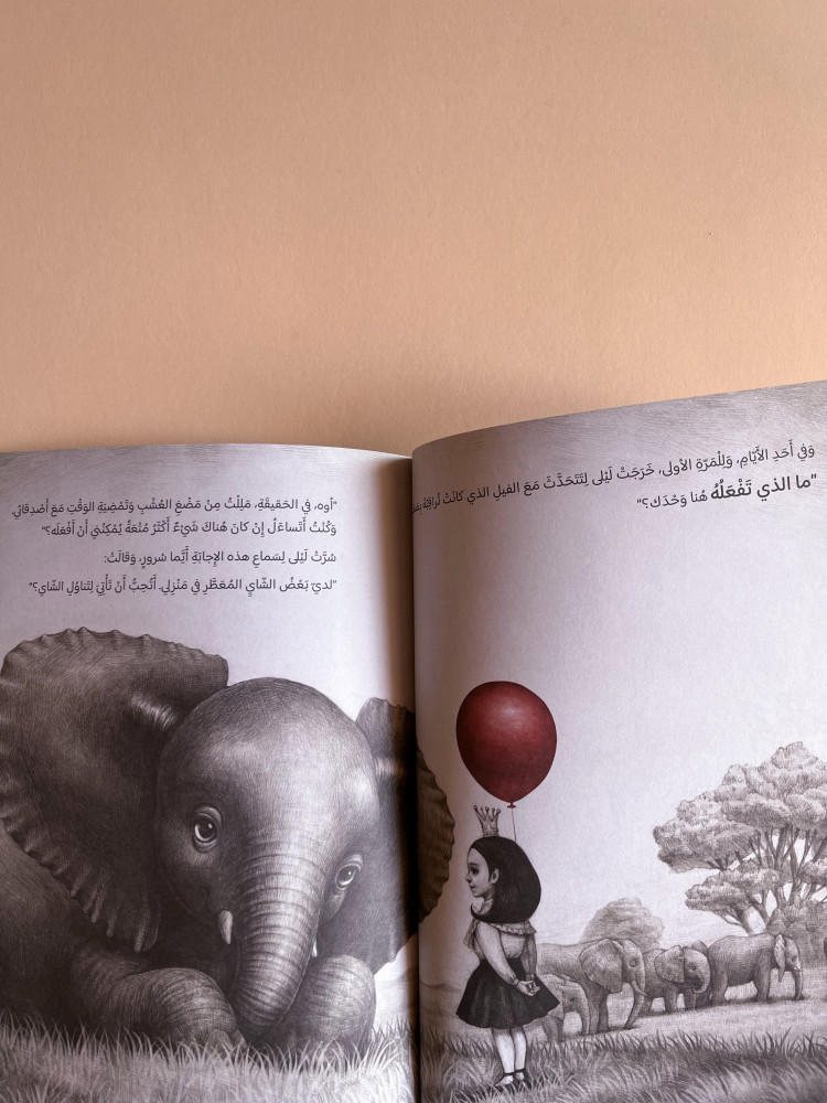 تعيش ليلى الجميلة وحدها في قصر كبير، تملك فيه كل شيء، وتستطيع أن تحصل فيه على كل ما تريد. لكنّها، مع ذلك، تشعر بالملل. فتقرر في يوم من الأيّام أن تذهب لتدعو الفيل الصغير الذي كانت تراقبه من النافذة إلى شرب فنجان من الشاي المعطر.