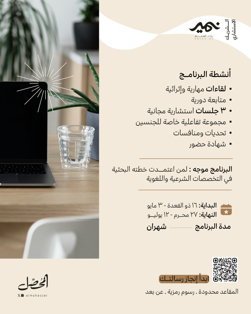 - المقاعد محدودة لضمان جودة المتابعة، والأولوية لمن يسجل أولًا.