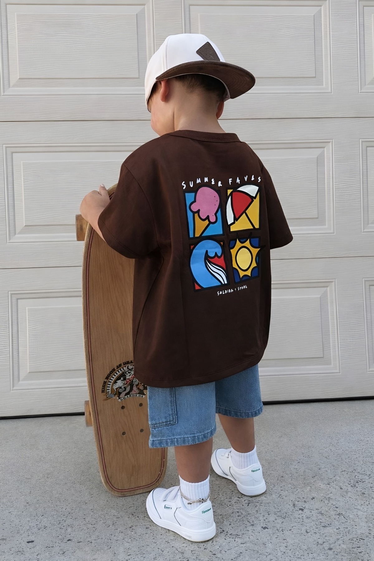 تي شيرت صيفي مطبوع كبير الحجم للأطفال من الجنسين 1GH4