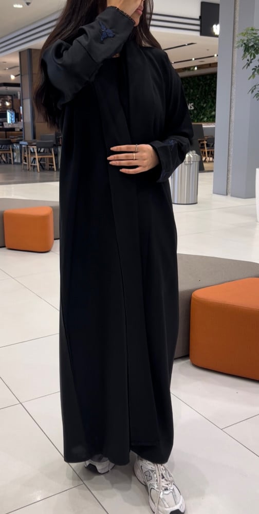 عباية سوداء الاكمام تطريز فراشات كحلي + طرحة