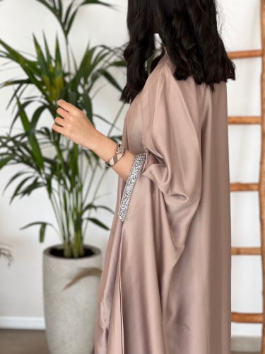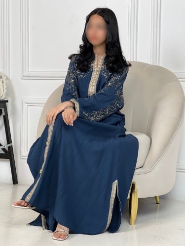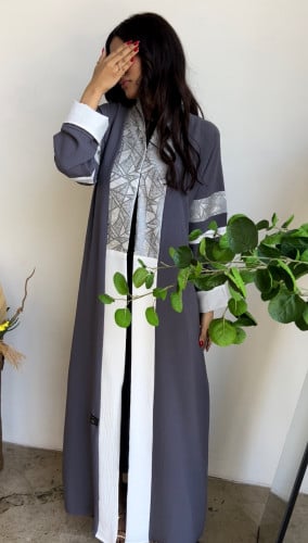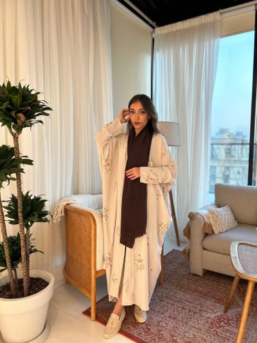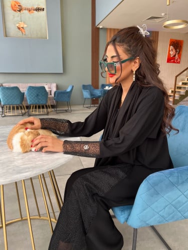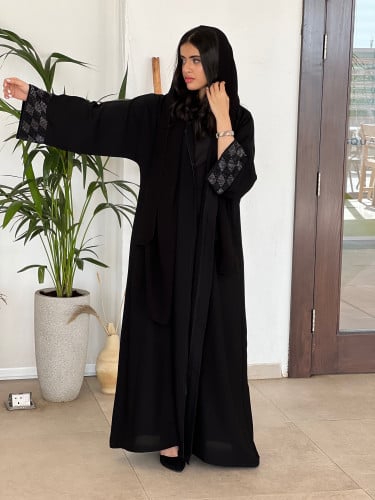 عباية نص بشت مطرزة من الامام والخلف+ طرحة لونها اسود