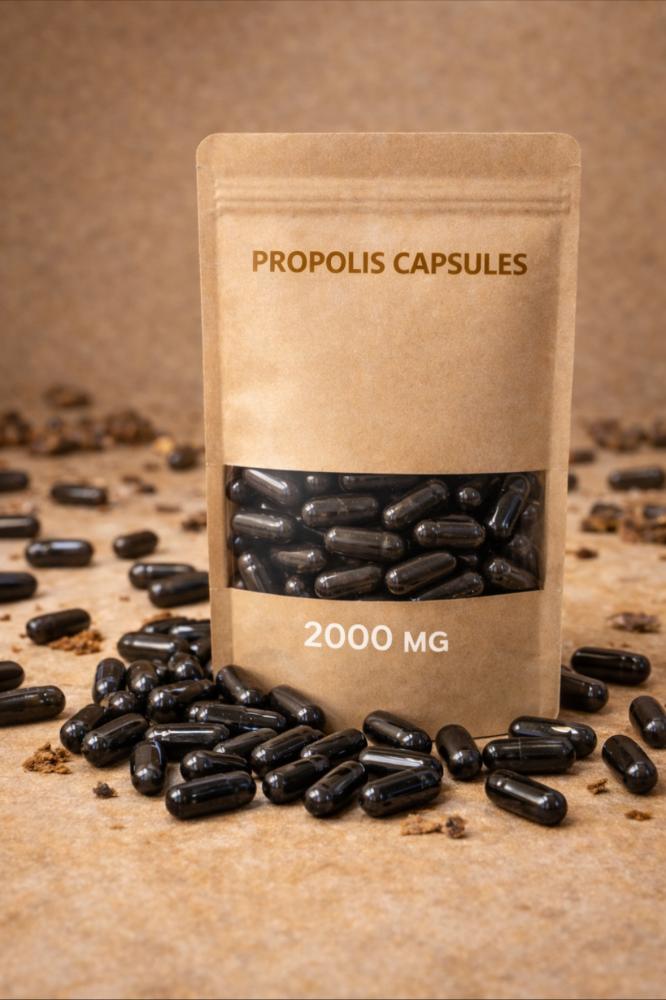 العكبر (Propolis) هو مادة صمغية يجمعها النحل من براعم الأشجار ويخلطها مع إفرازاته اللعابية وشمع العسل، ويستخدمها لبناء وتطهير الخلية. يحتوي العكبر على مركبات نشطة بيولوجيًا مثل الفلافونويدات والأحماض الفينولية والتربينات، والتي تمتلك خصائص مضادة للأكسدة والالتهابات والميكروبات.