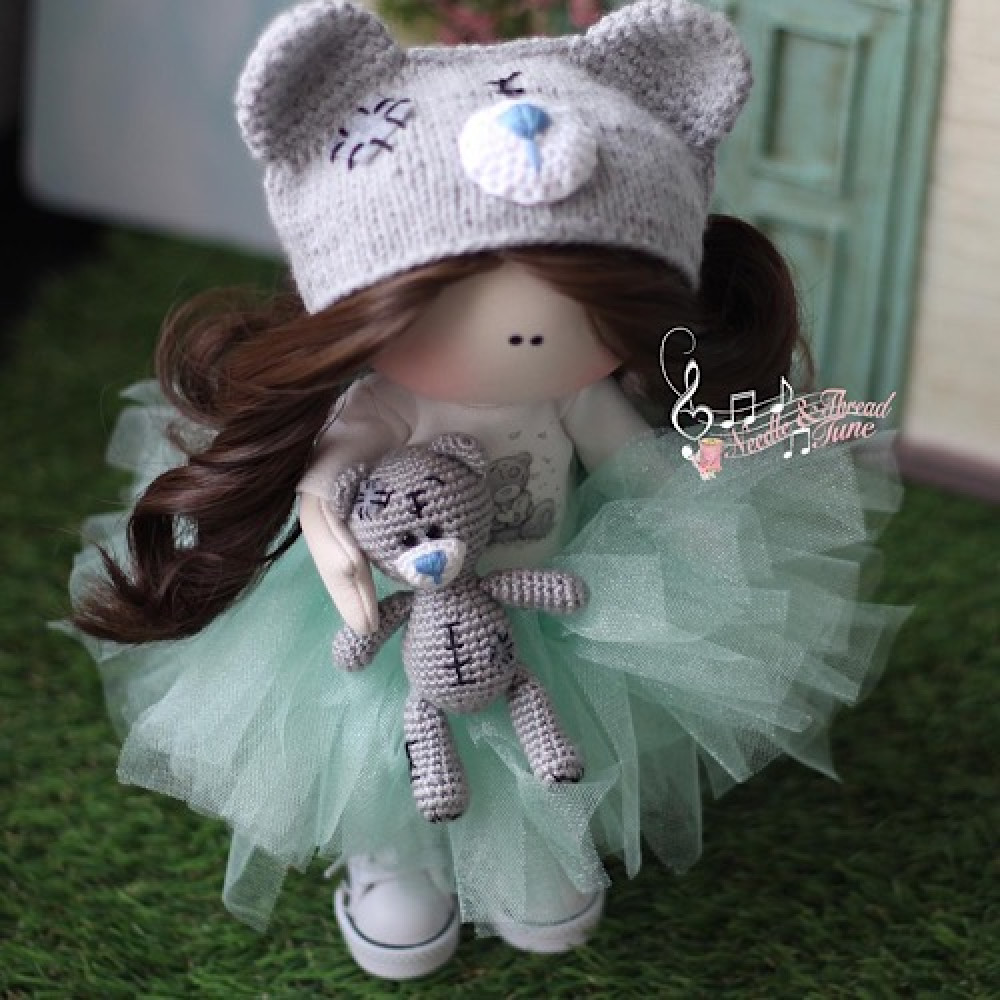 -الدب (تيدي) مرفق مع الدمية مصنوع بالكروشية