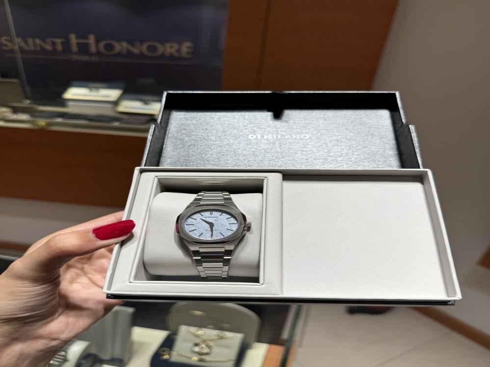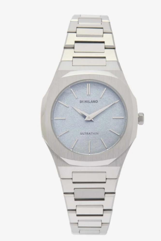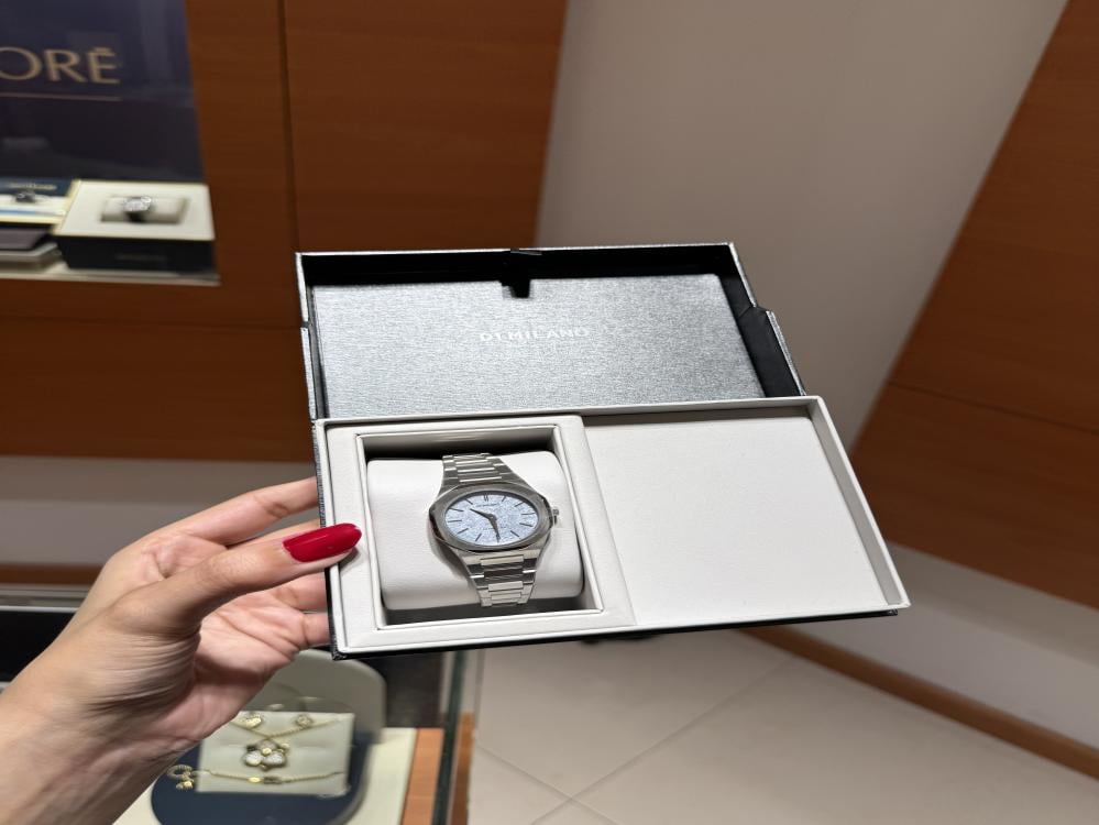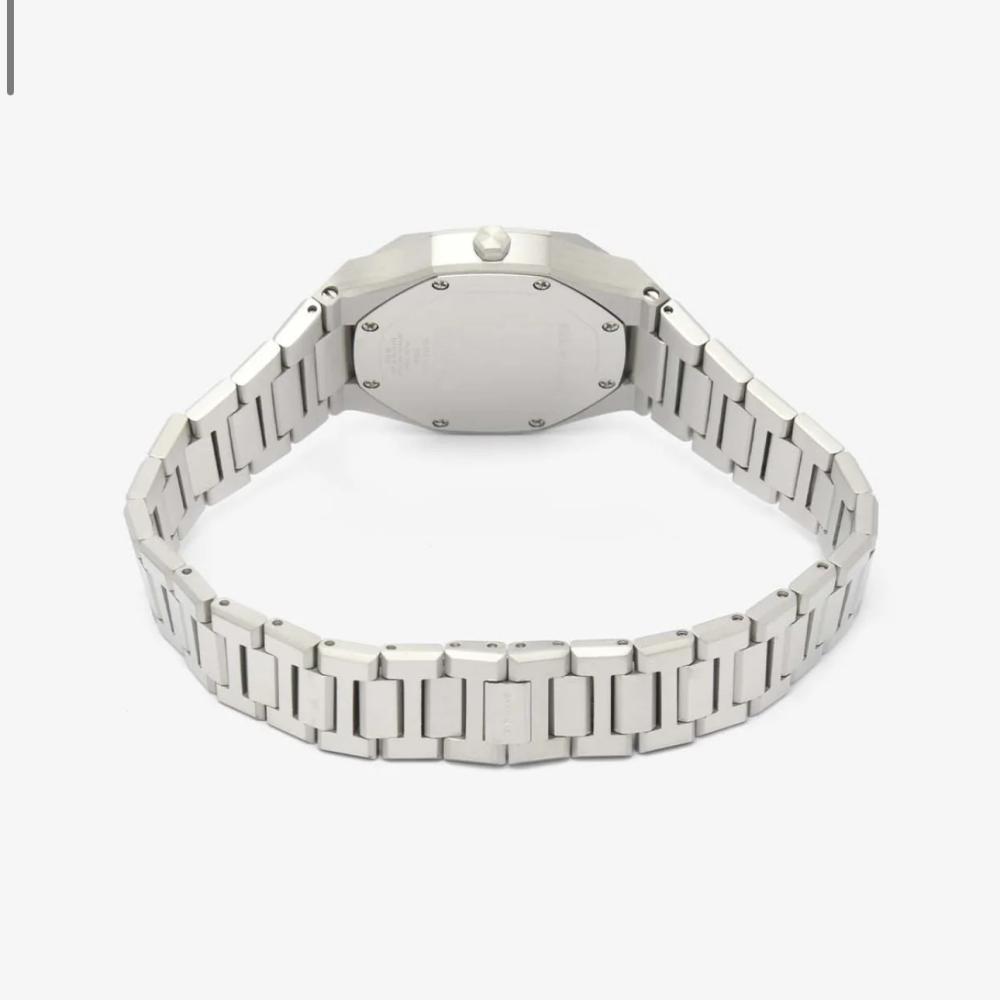 الخامة: ستينلس ستيل 316Lإغلاق بمشبك مخفي قابل للطيإطار خلفي من الستينلس ستيل الفضي 316 الالمينا: فضي بتصميم صن راينوع الزجاج: زجاج الياقوت بطبقة زرقاء مانعة للانعكاسآلية الحركة: مايوتا 1ال22مُقاومة الماء: 5 بارالوزن: 75 غ