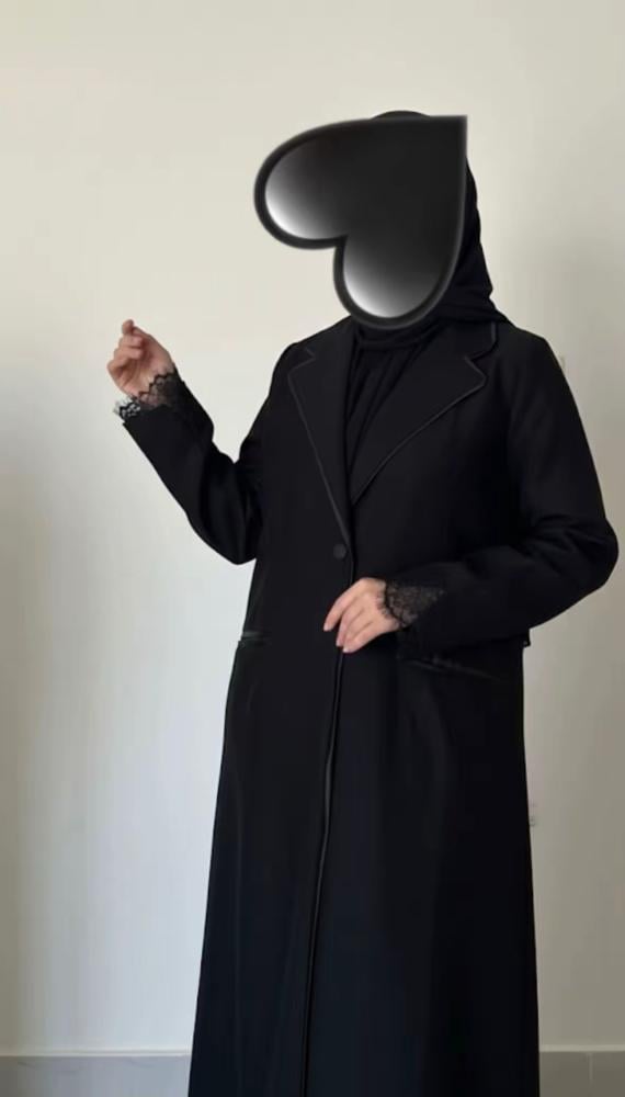 العباية مبطّنة من الداخل لتمنحك راحة وثبات في القَصّة، وتتميّز بلمسات تحديد باللون الأسود اللامع على الياقة والجيوب تضيف لمسة عصرية راقية تعكس الذوق الفخم.
