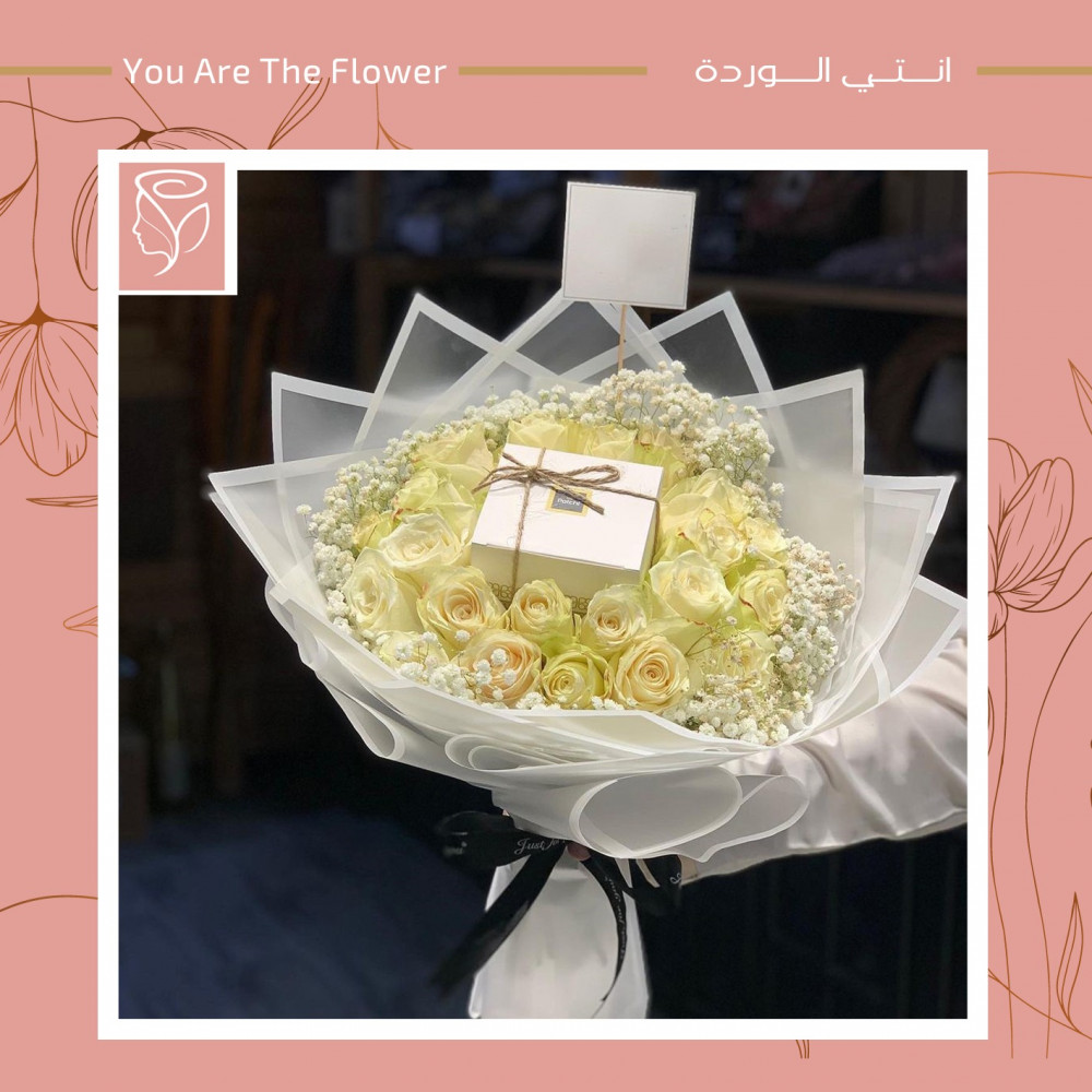 - تزين باقة ورد مع تشوكلت بإكسسوارات فاخرة تضفي لمسة من الفن والجمال، مما يجعلها هدية متكاملة تضج بالأنوثة والفخامة.