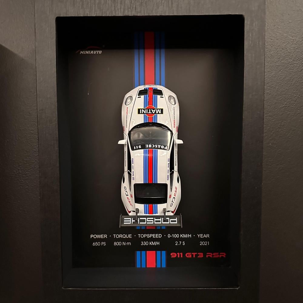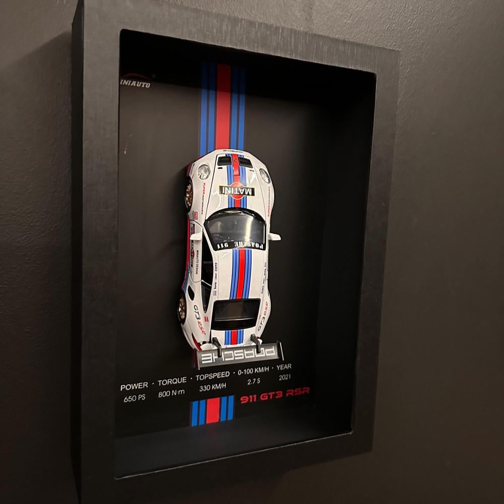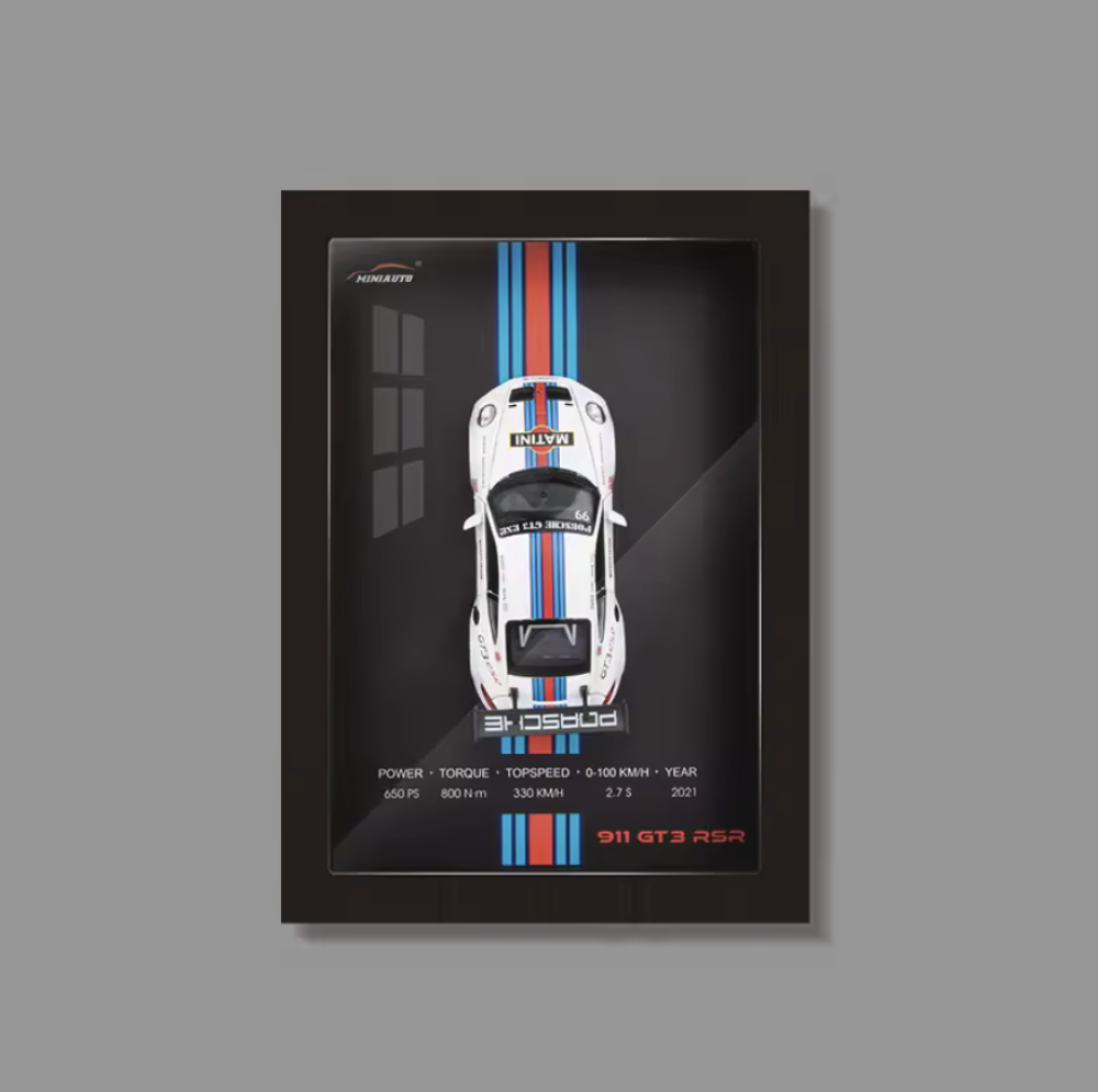 مجسم بورش - 911 GT3 RSR داي كاست يمكن تعليقها مع إطار NEX الجداري ثلاثي الأبعاد.