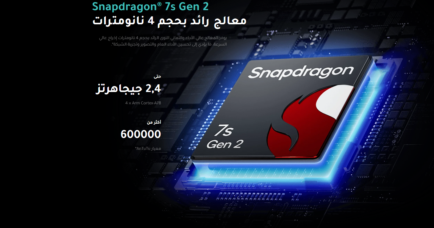 - نوع المعالج : Snapdragon® 7s Gen 2 Mobile Platform