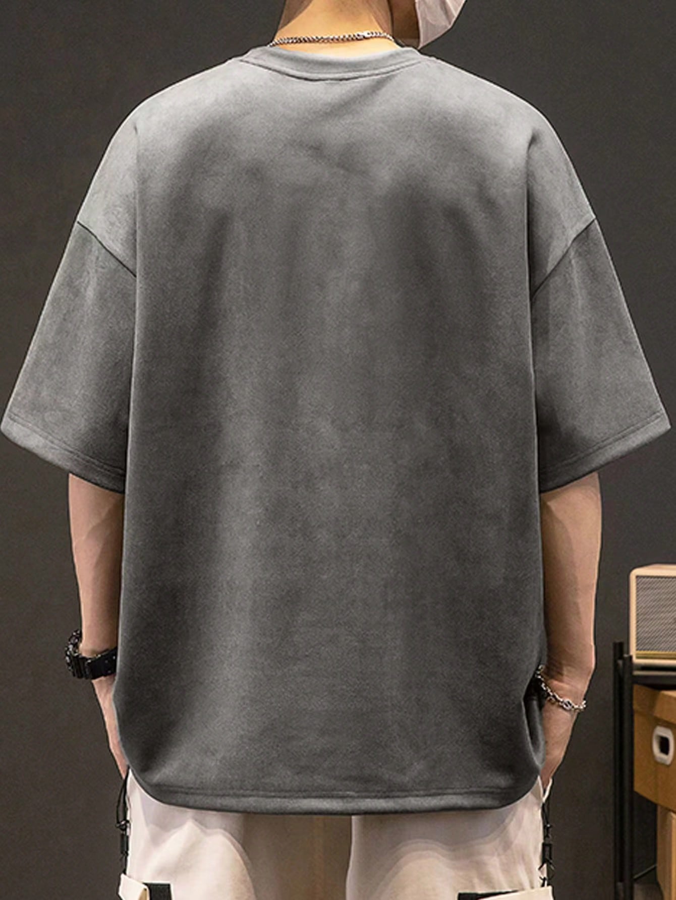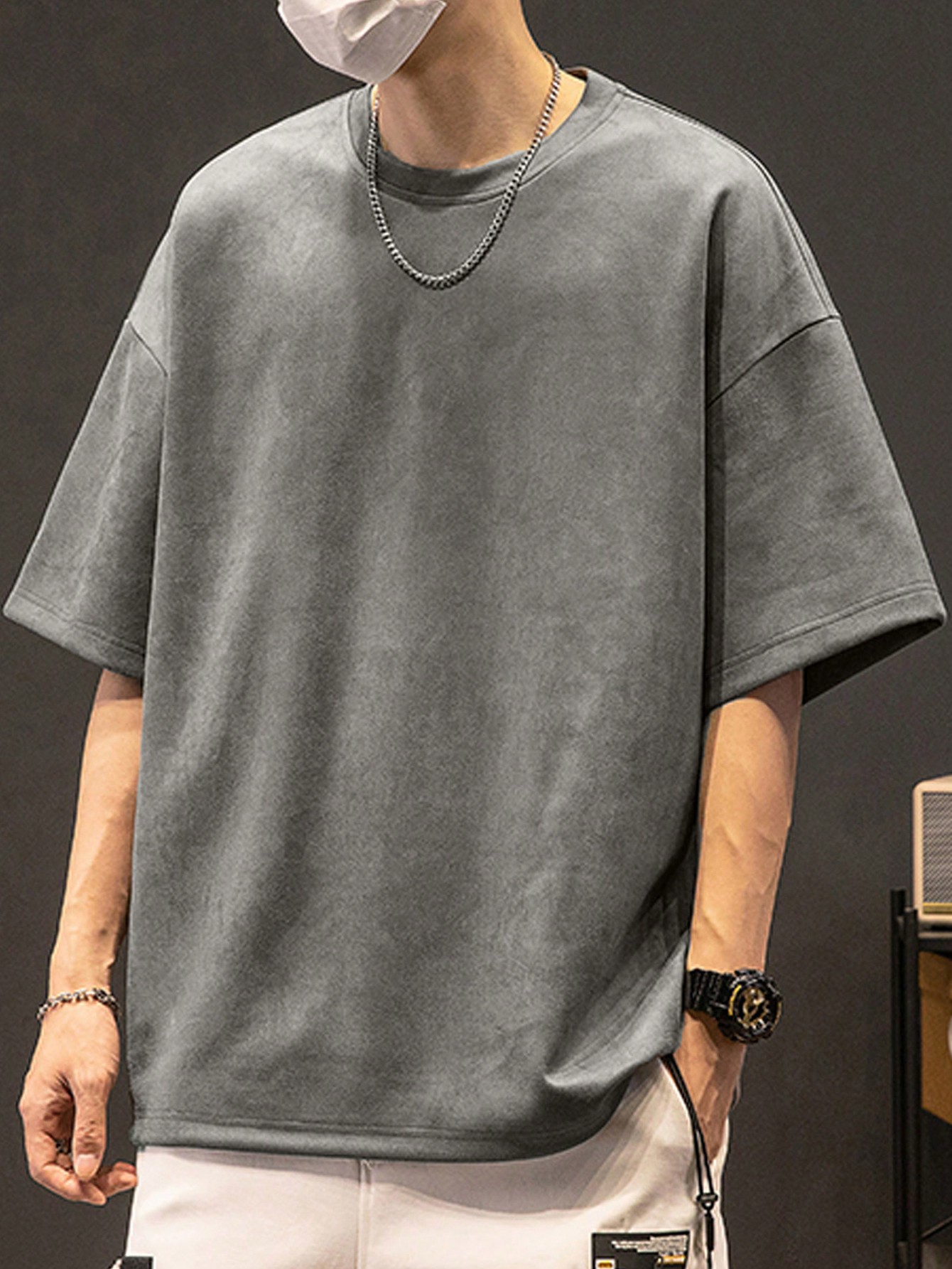 تي شيرت رجالي كاجوال واسع بياقة مستديرة وكتف منخفض