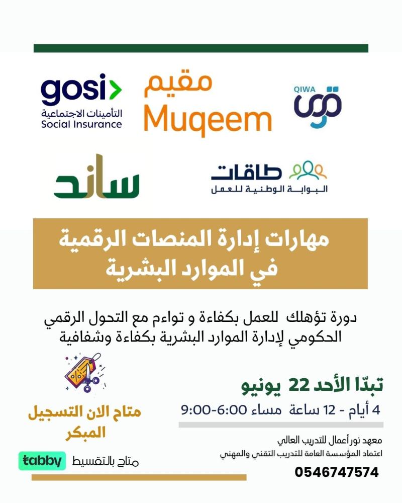 • إلمام شامل بأهم المنصات الرقمية في الموارد البشرية