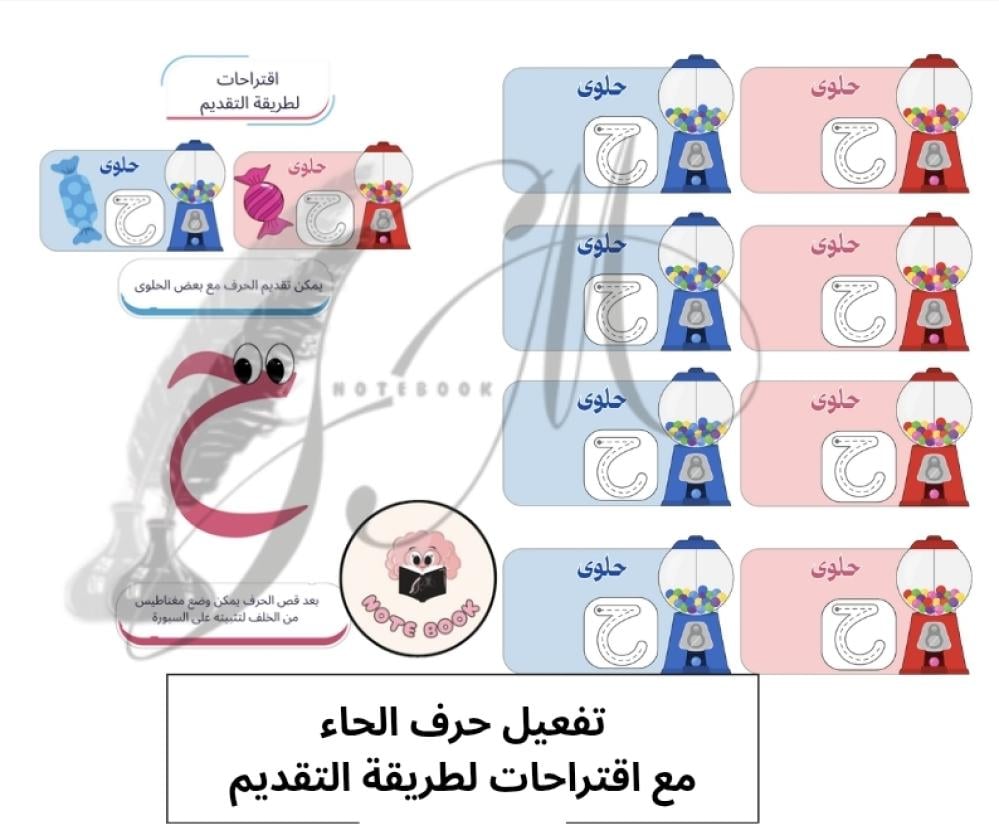 تصميم pdf جاهز للطباعة رائع لتفعيل حرف ( ح )للروضة ، مع اقتراحات سهلة وبسيطة لطريقة التقديم ، يتم طباعته على ورق A4 مقوى..
