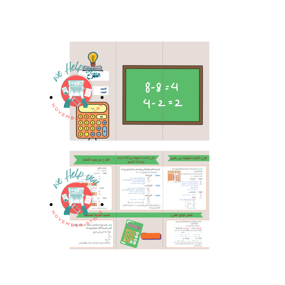 مطوية رياضيات ( الطرح ) - الصف الثالث الابتدائي - الفصل الدراسي الأول