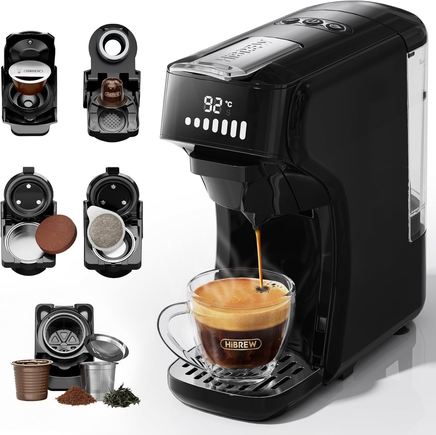 - 5 في 1 متوافقة مع البودات ومسحوق الإسبريسو: يمكن أن تتوافق ماكينة تحضير القهوة هذه تمامًا مع Kcup* Pod, Nes*, DG* Capsule, E.S.E. كبسولات ومسحوق اسبريسو. لا تحتاج إلى شراء مجموعة متنوعة من آلات القهوة بسبب الكبسولات المختلفة، فهذا سيوفر لك الكثير من المال.