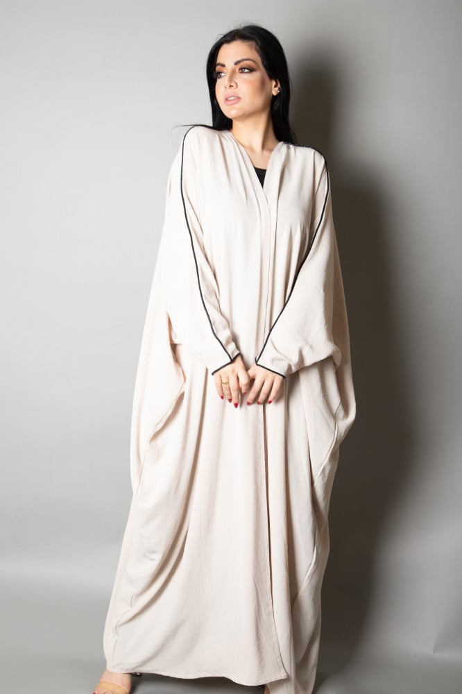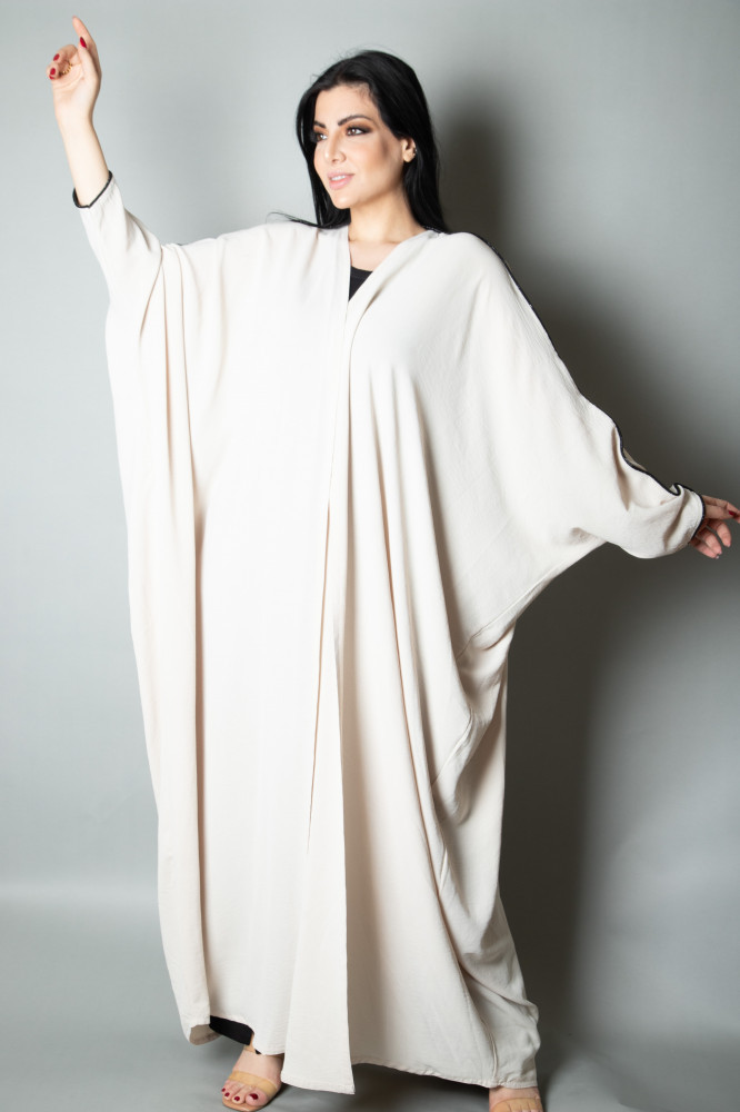 عبايه اوف وايت بدون طقطق تتميز بالمظهر المثالي والمناسب لجميع الاوقات يوجد طرحه مع العبايه